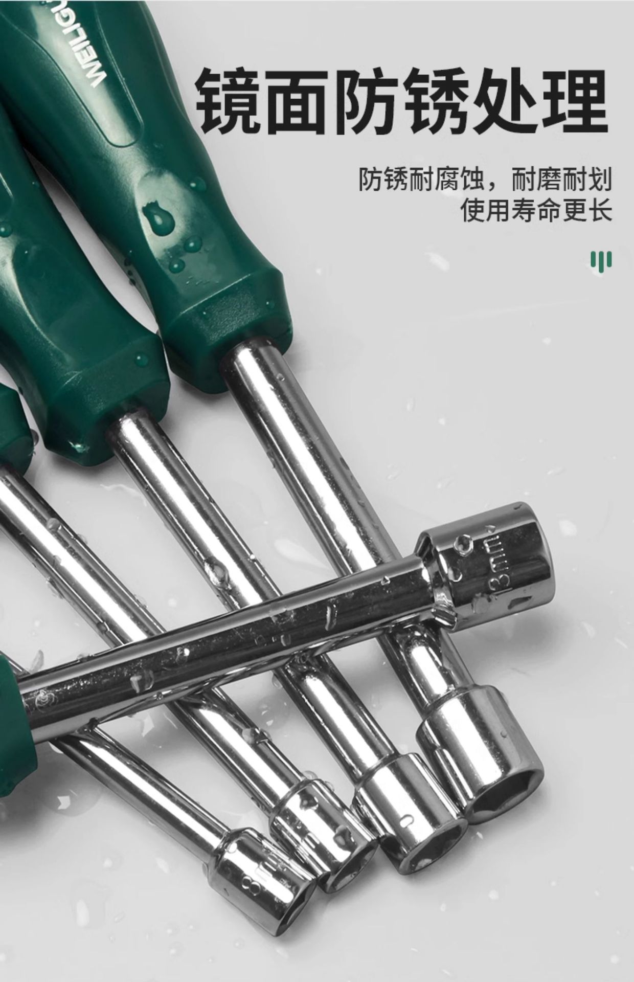 • 미끄럼 방지 녹색 손잡이 8+10mm 각 1개(총 2개)