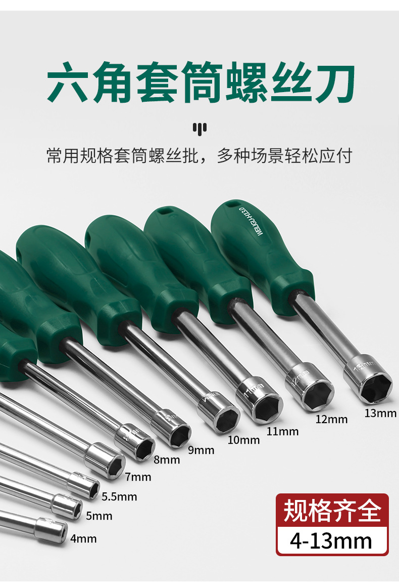 • 미끄럼 방지 녹색 손잡이 4~14mm 각 1개(총 12개)