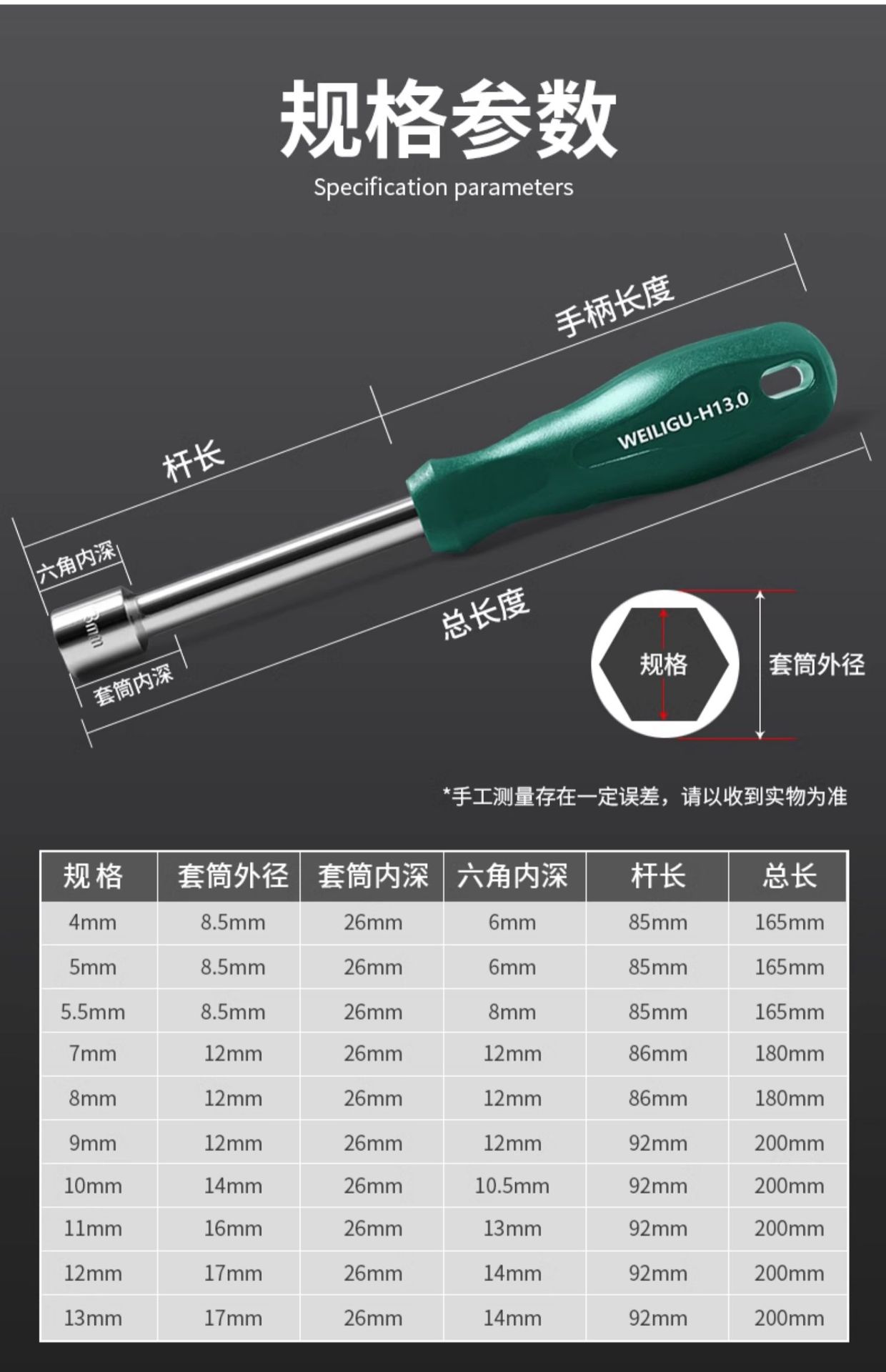 • H13mm 미끄럼 방지 녹색 손잡이