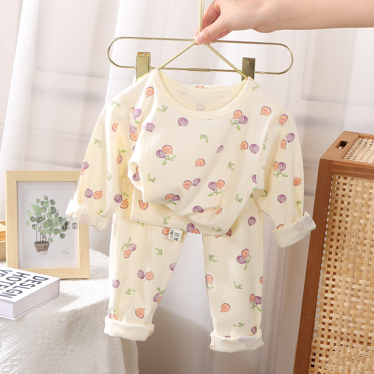 2023 새로운 가을 소년과 소녀 로마 스트립 빗질 고급 가정 의류 세트 아기를위한 경량 속옷