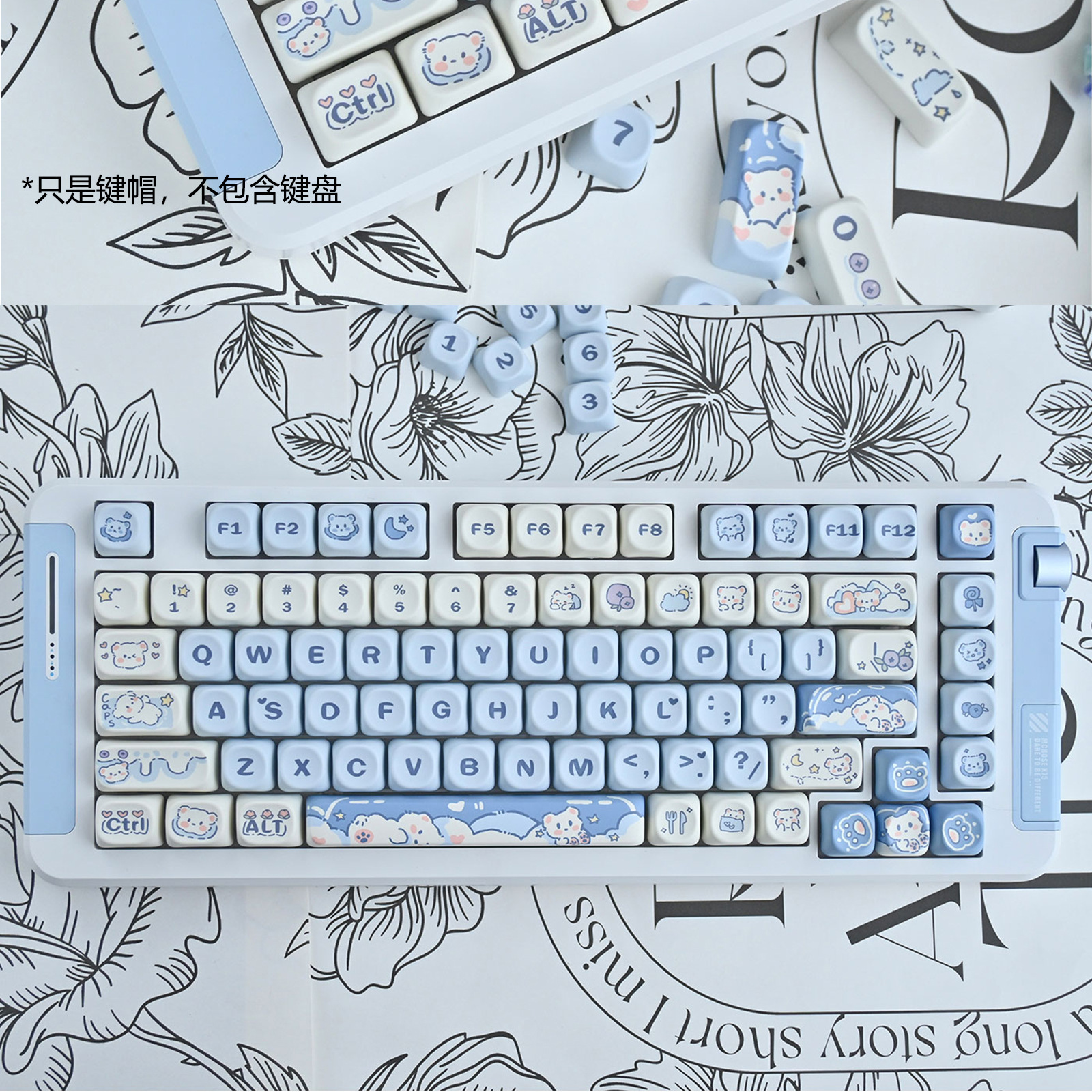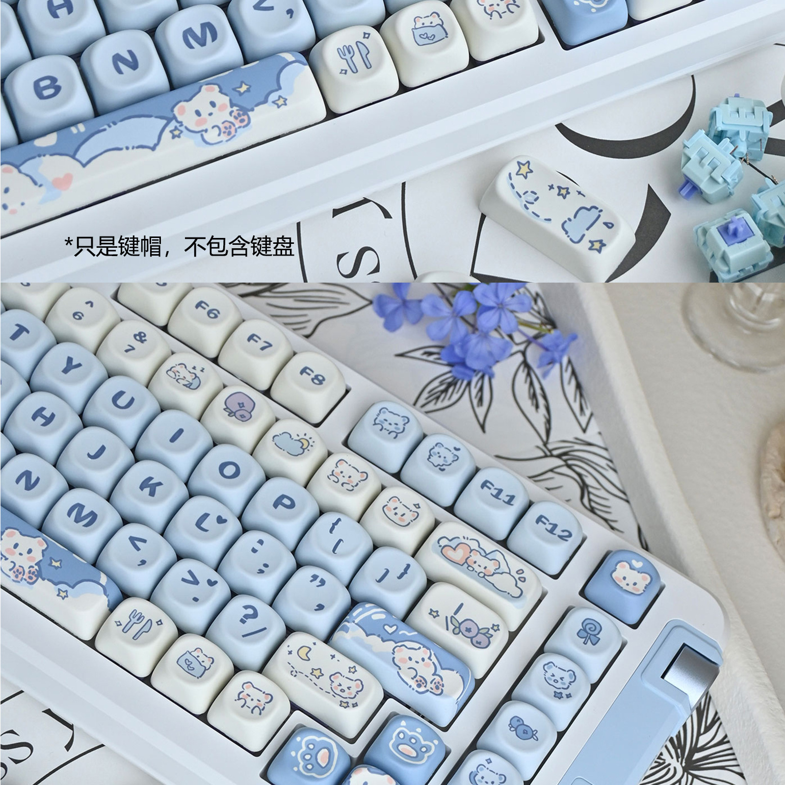 아이스크림 곰 키 캡 블루 귀여운 만화 MOA 높이 승화 75 98 키 풀 세트 기계 키보드 캡