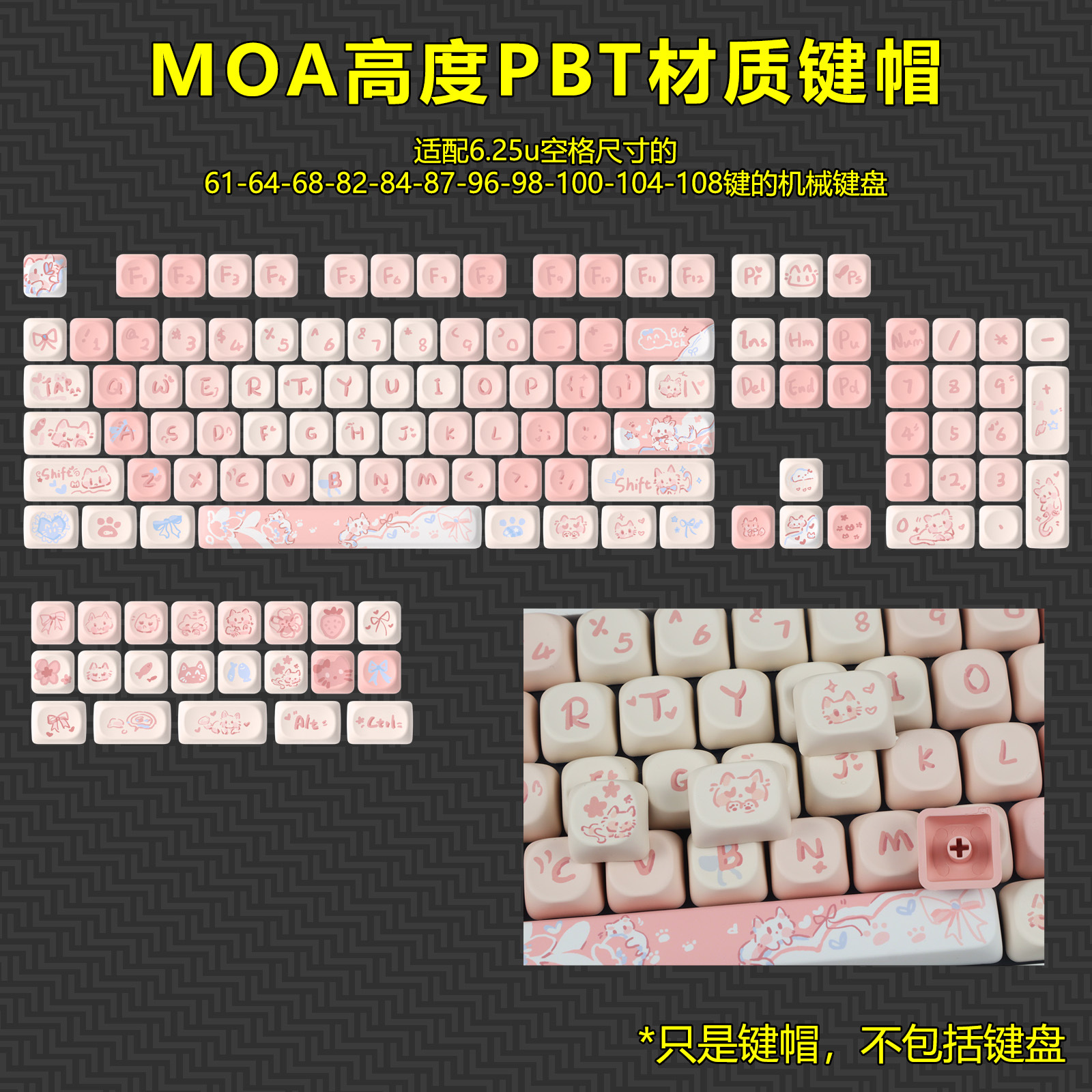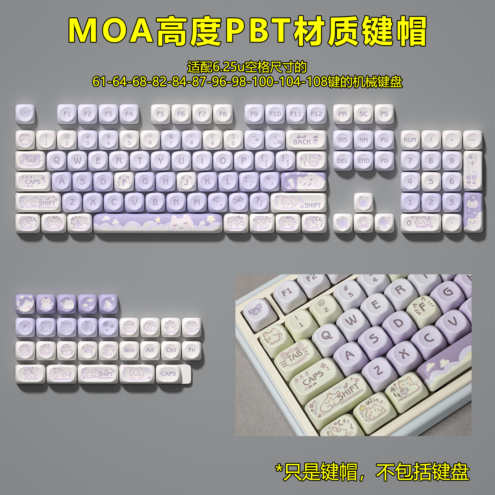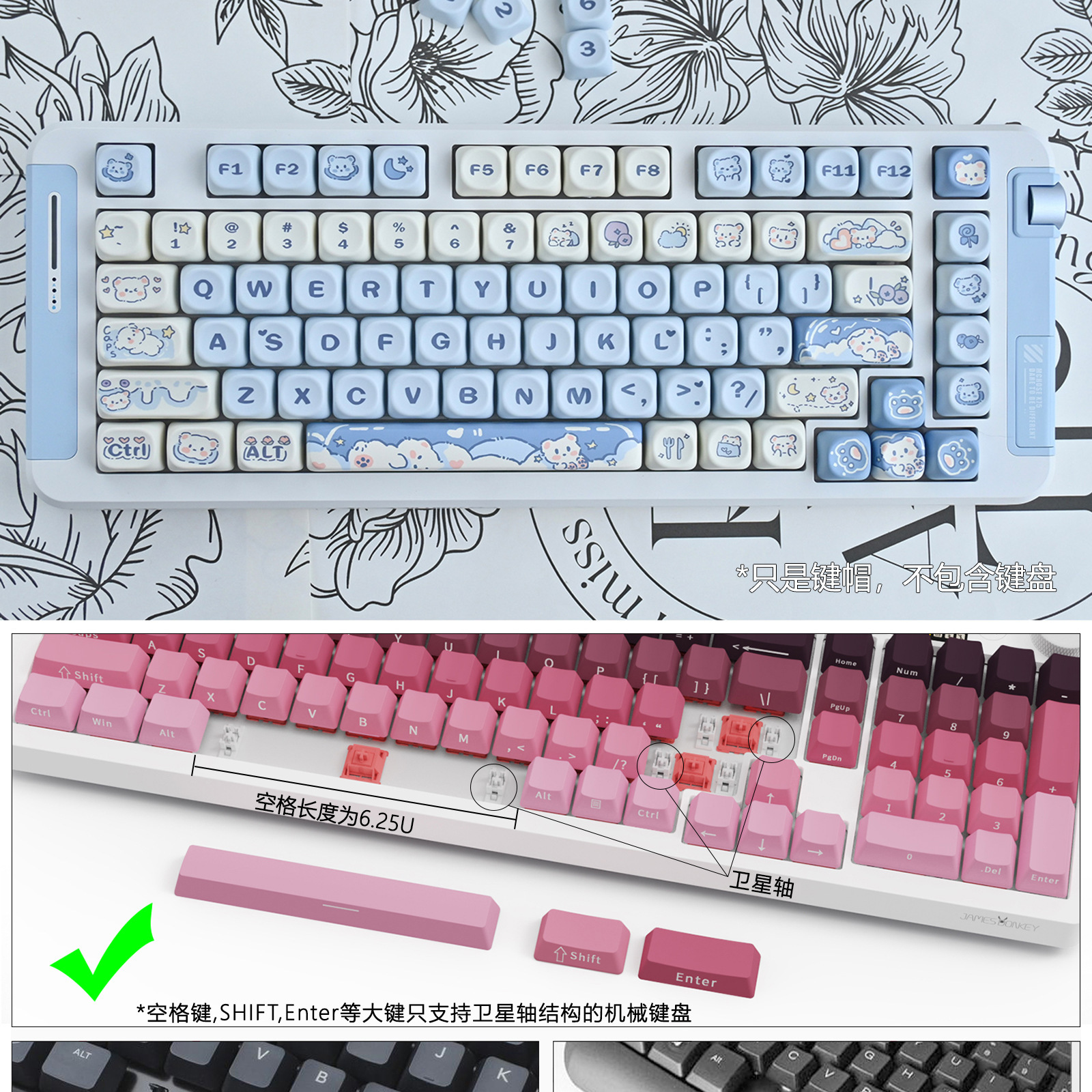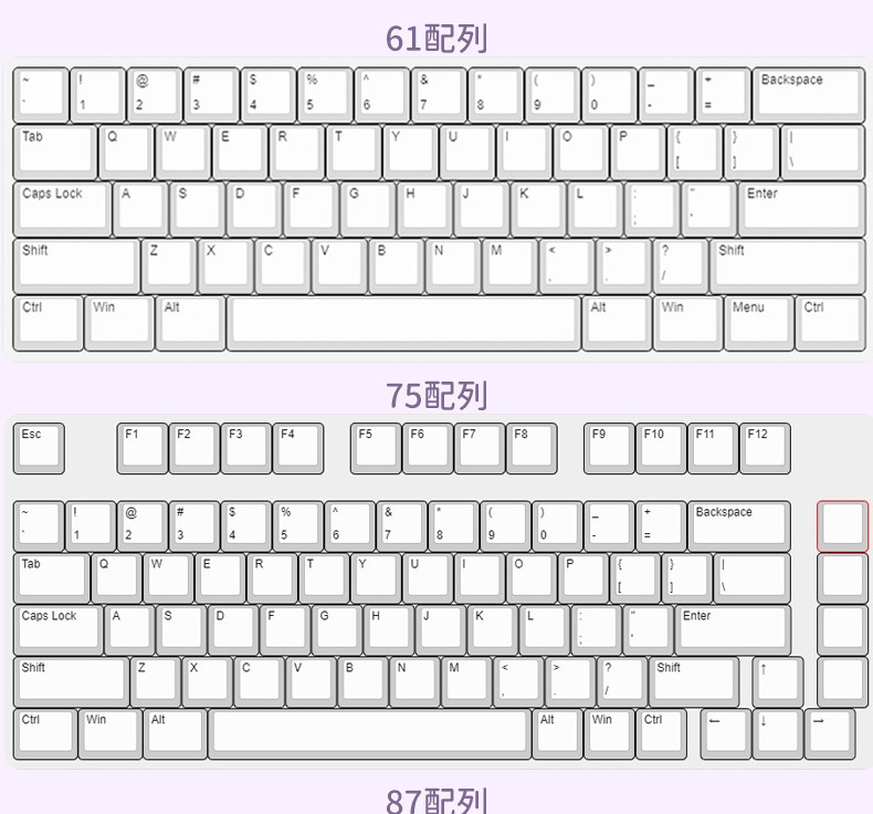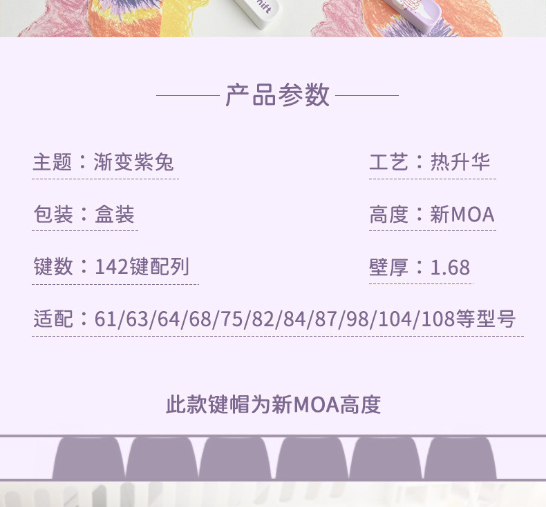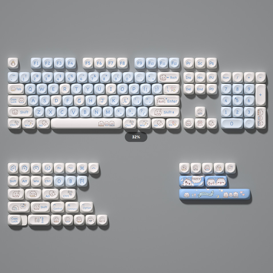 秋天修狗:140键 紫兔:142键 蓝色小猫咪:144键 奶绿熊猫:140键