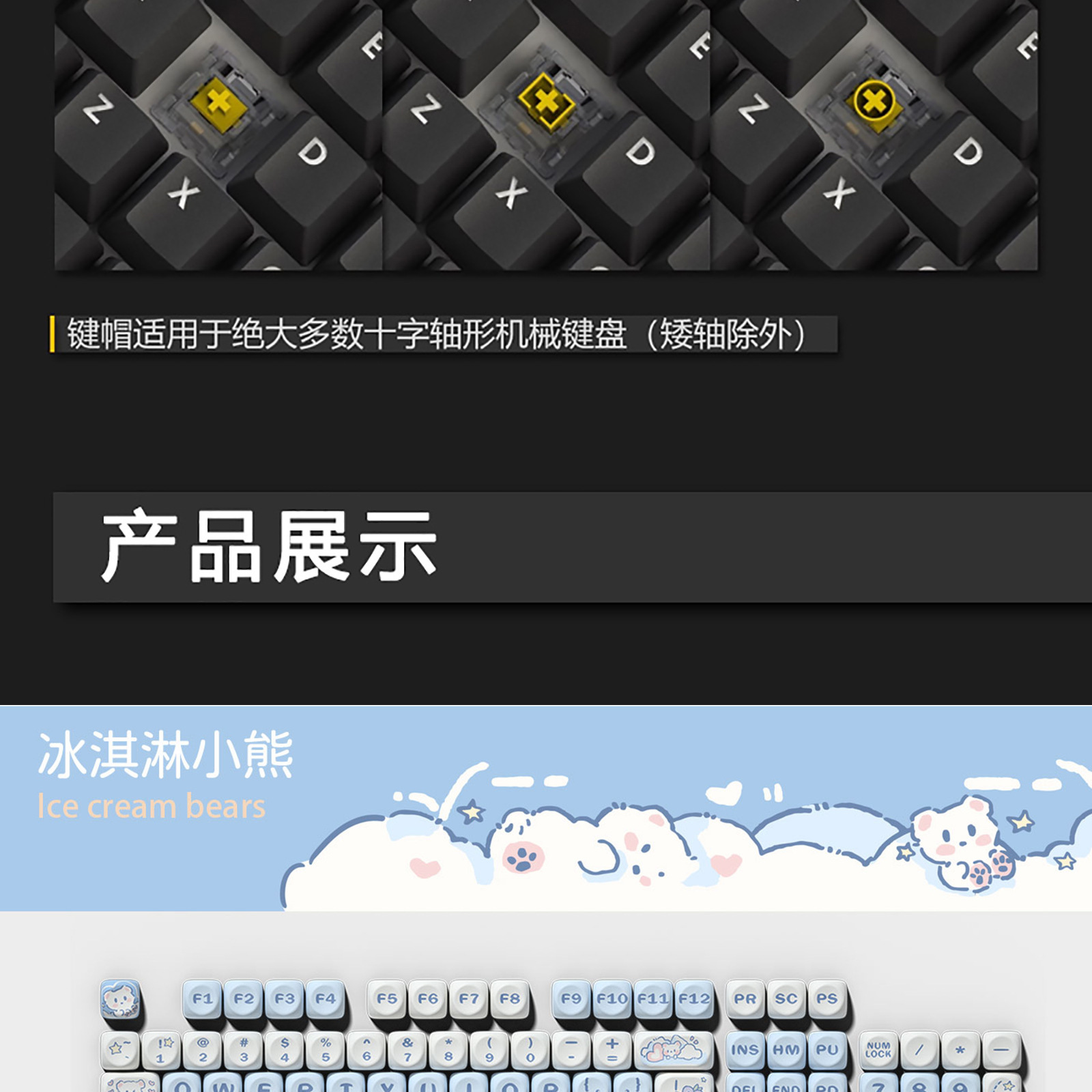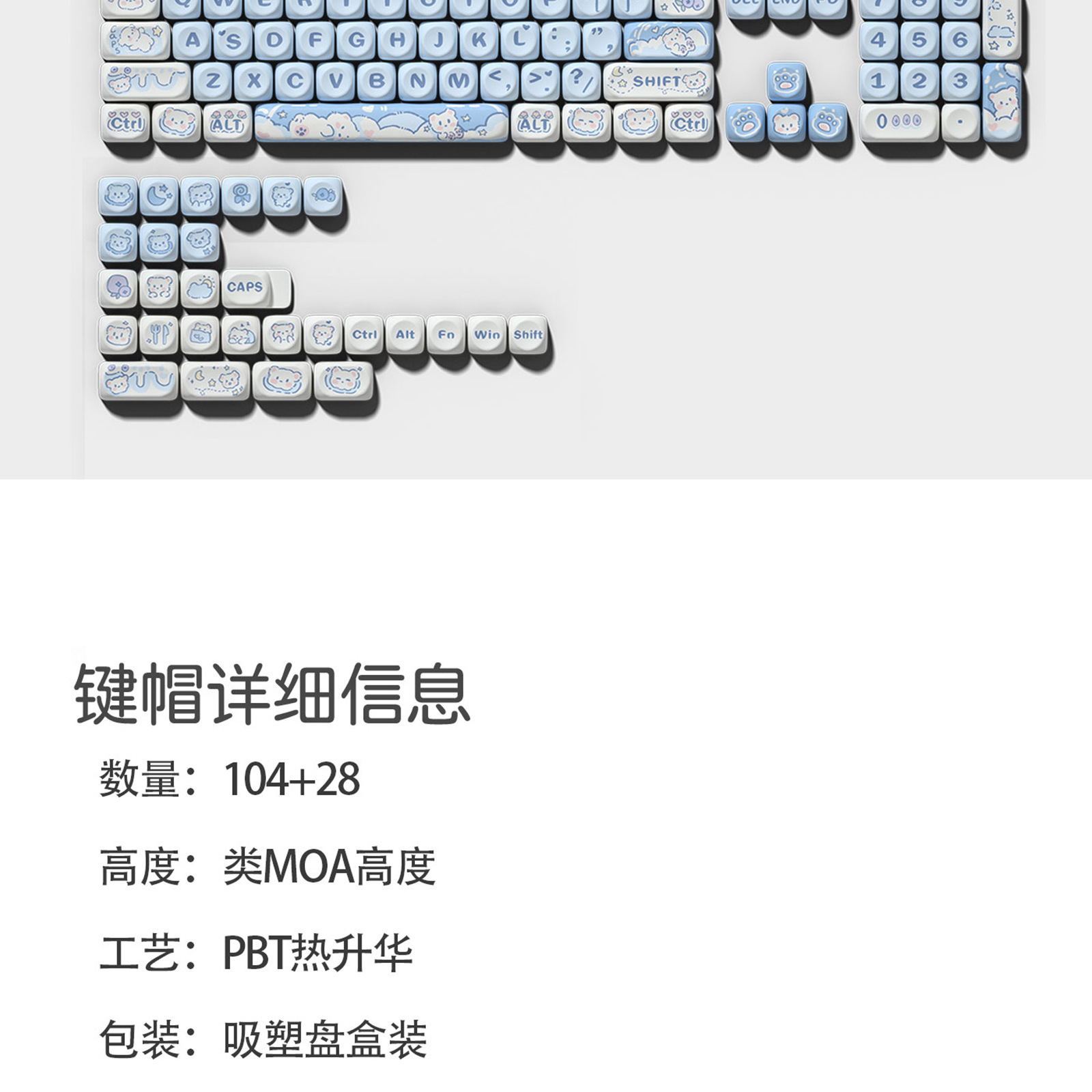 아이스크림 곰 키 캡 블루 귀여운 만화 MOA 높이 승화 75 98 키 풀 세트 기계 키보드 캡스토어 가기