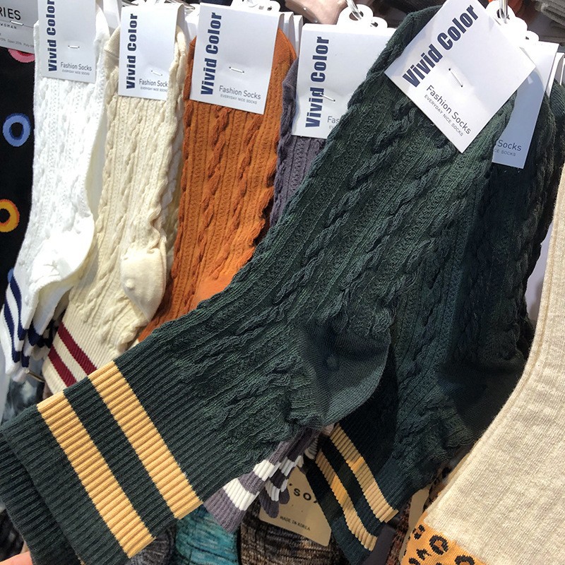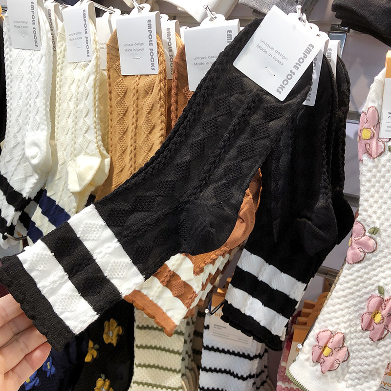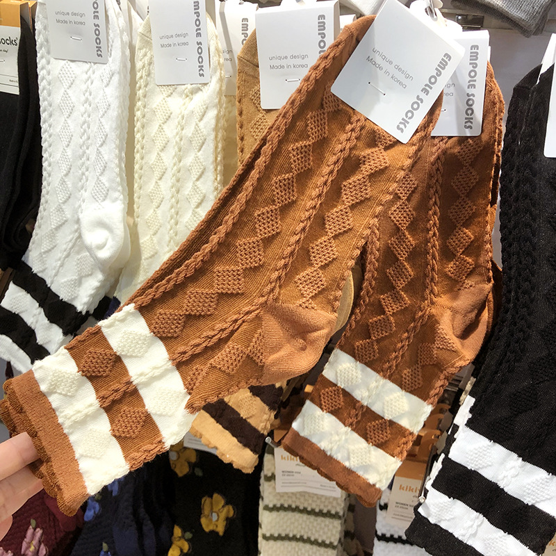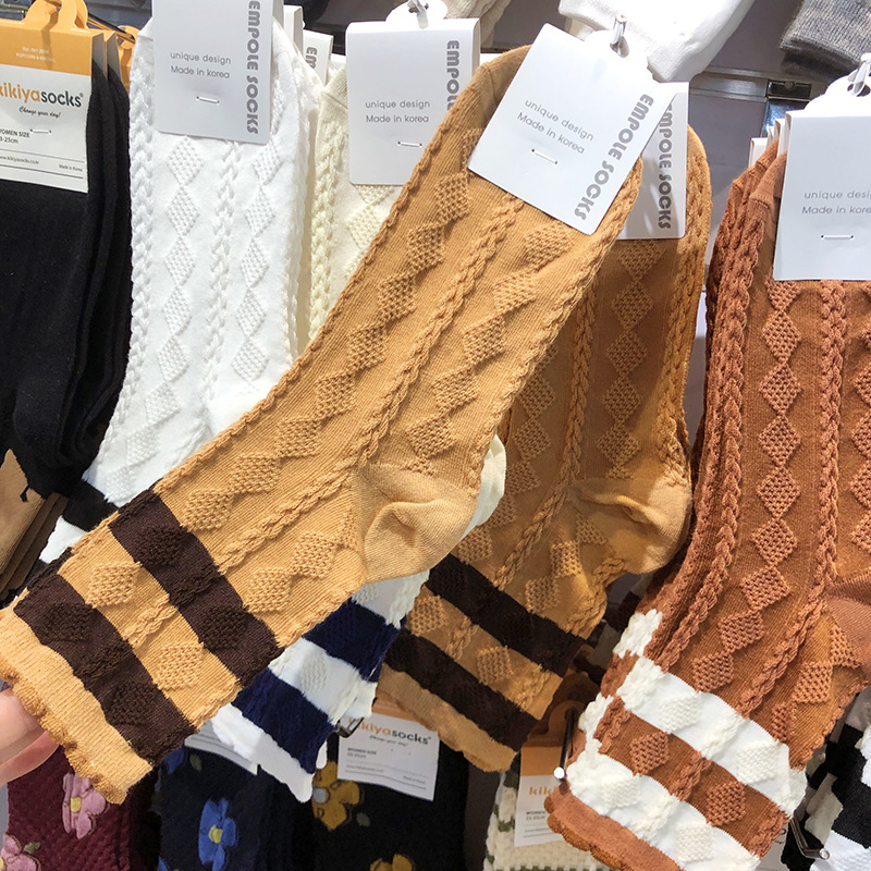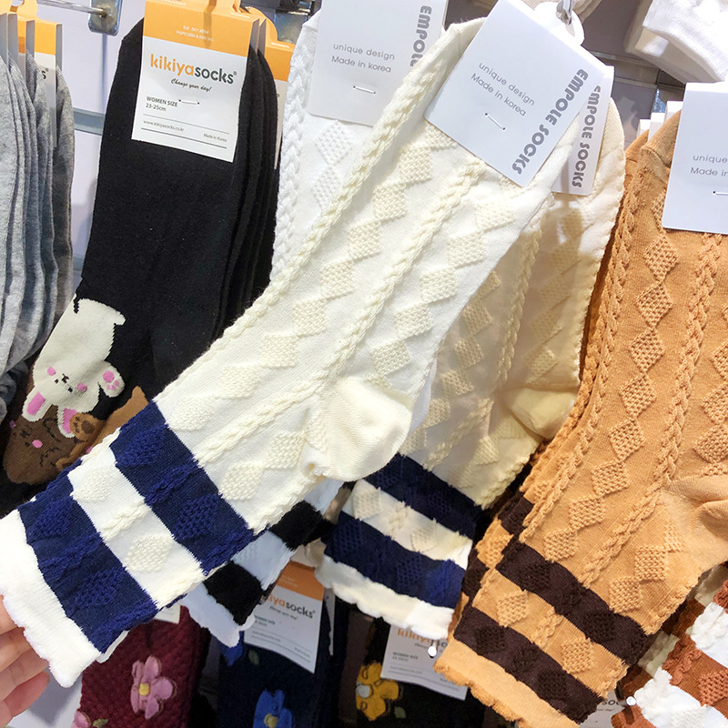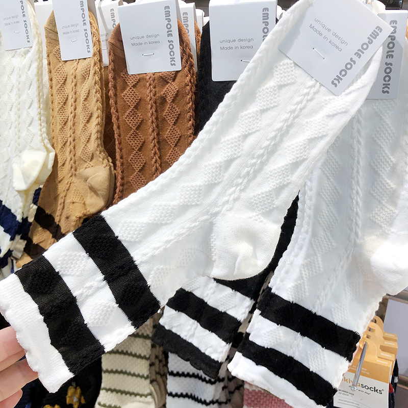 한국 수입 EMPOLE 코튼 양말 2 바 와이드 스트라이프 걸스 양말 귀 가장자리 양각 다이아몬드 마일 양말스토어 가기
