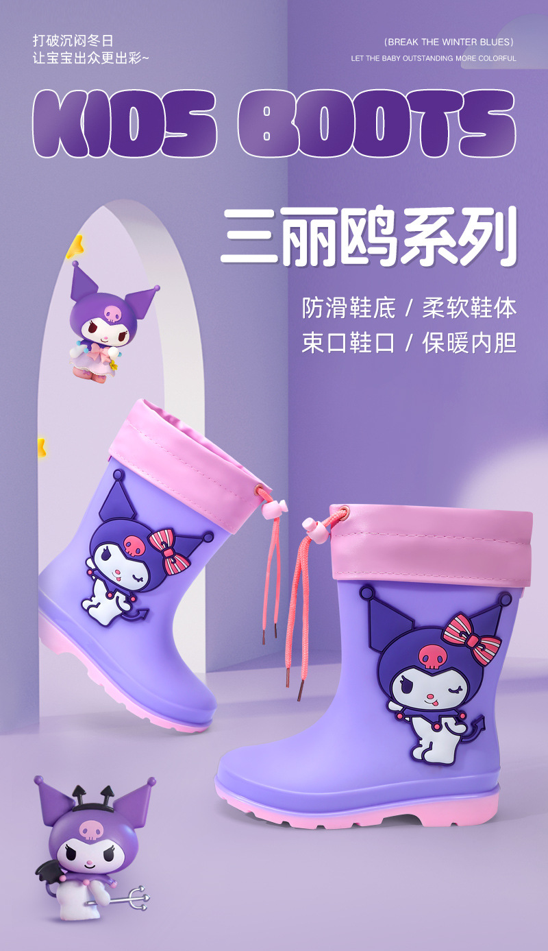 새로운 방수 스트랩 드로우 스트링 입 Sanrio Kulomi Meroti 어린이 중우 신발 소녀 학생 고무 부츠