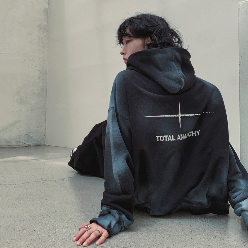 MYQ 그라디언트 타이-염료 후드 스웨터 남자 가을 느슨한 더블 지퍼 탑 한국 유행 카디건 재킷스토어 가기