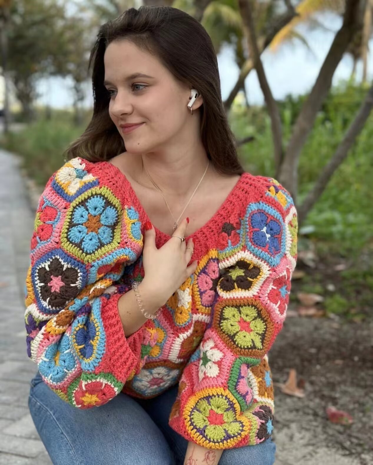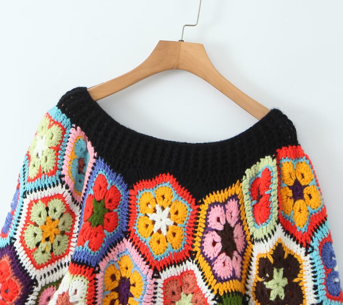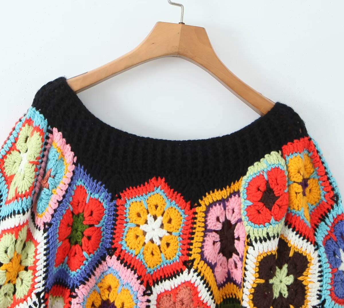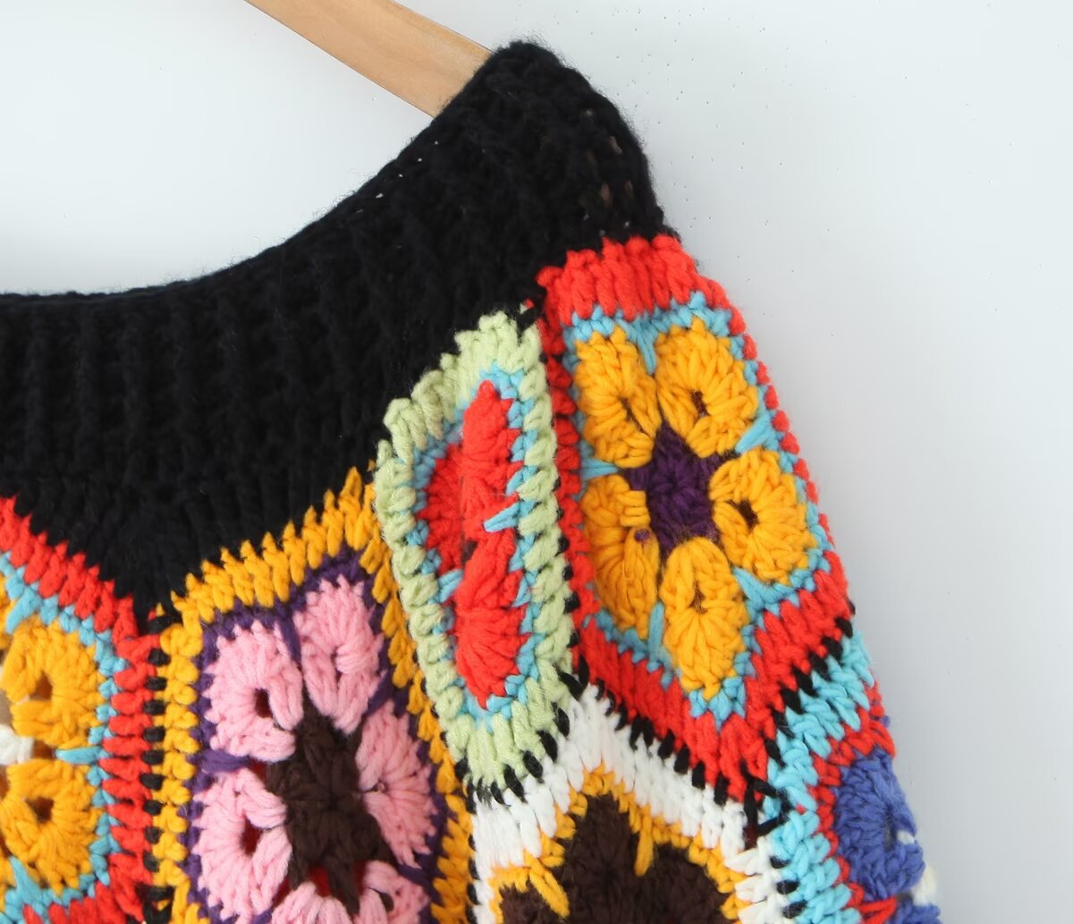수제 크로 셰 뜨개질 스웨터 여자의 2024 가을 새로운 유럽과 미국의 뜨거운 소녀 느슨한 크루 넥 짧은 블라우스 스웨터
