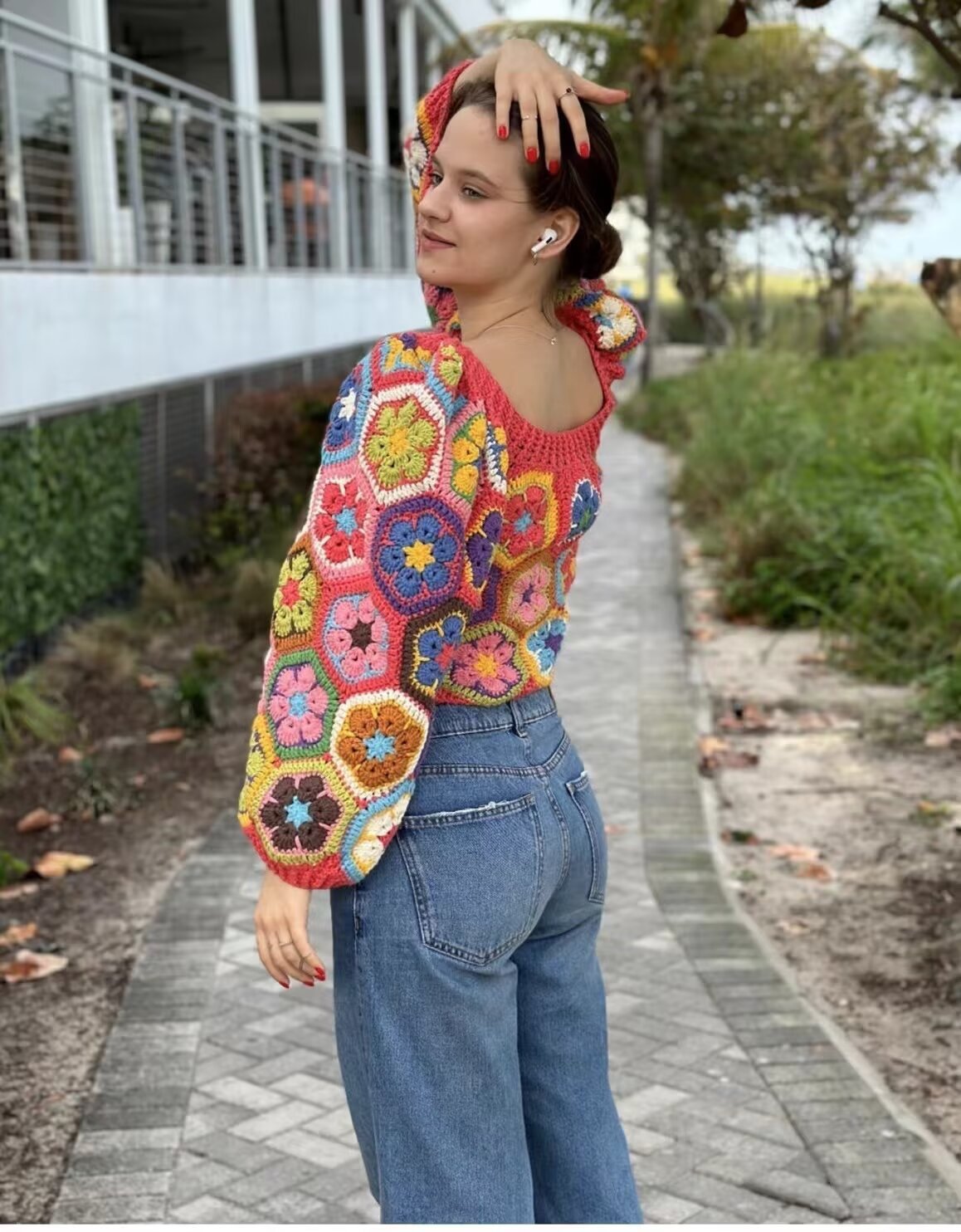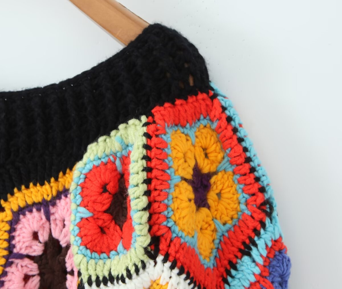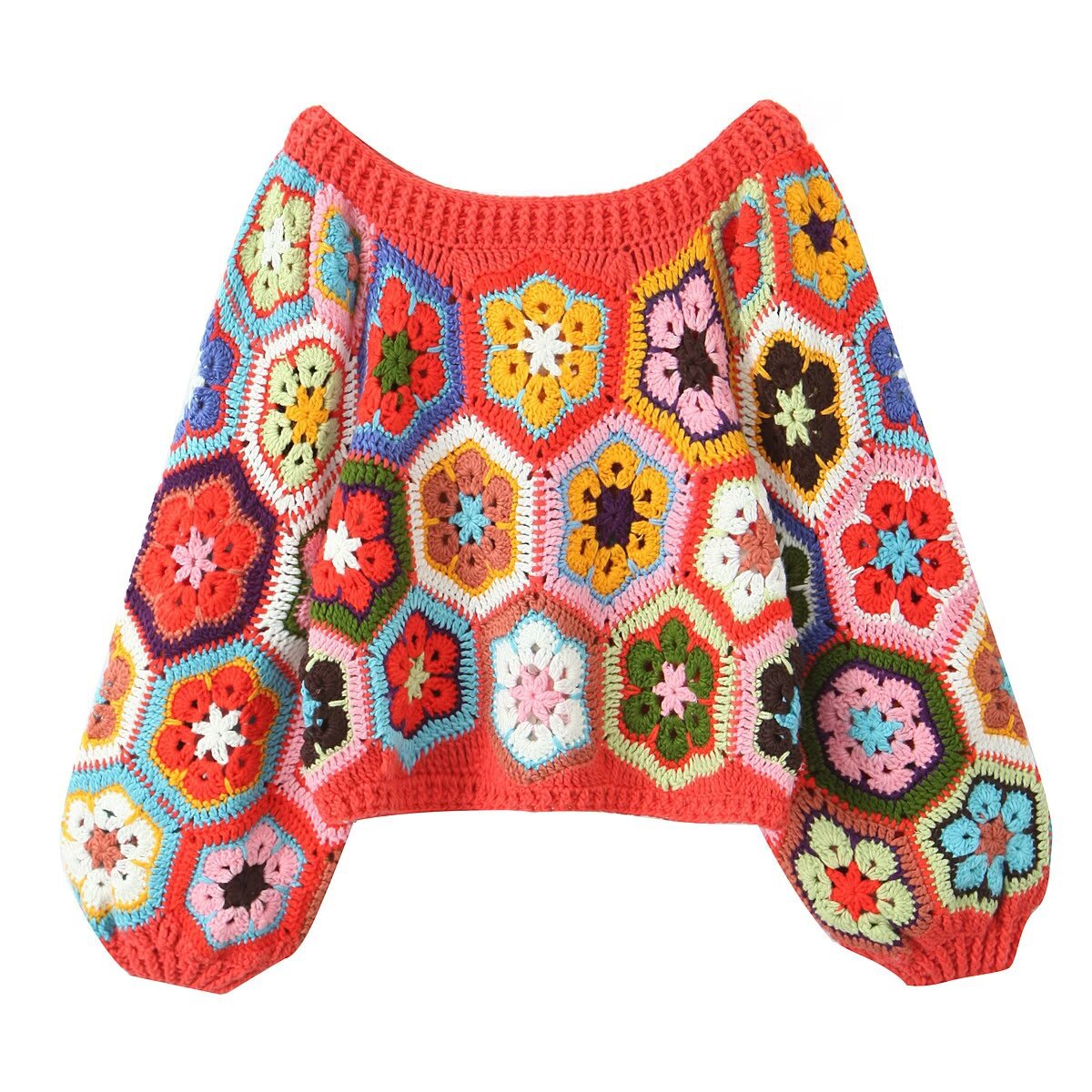 수제 크로 셰 뜨개질 스웨터 여자의 2024 가을 새로운 유럽과 미국의 뜨거운 소녀 느슨한 크루 넥 짧은 블라우스 스웨터스토어 가기
