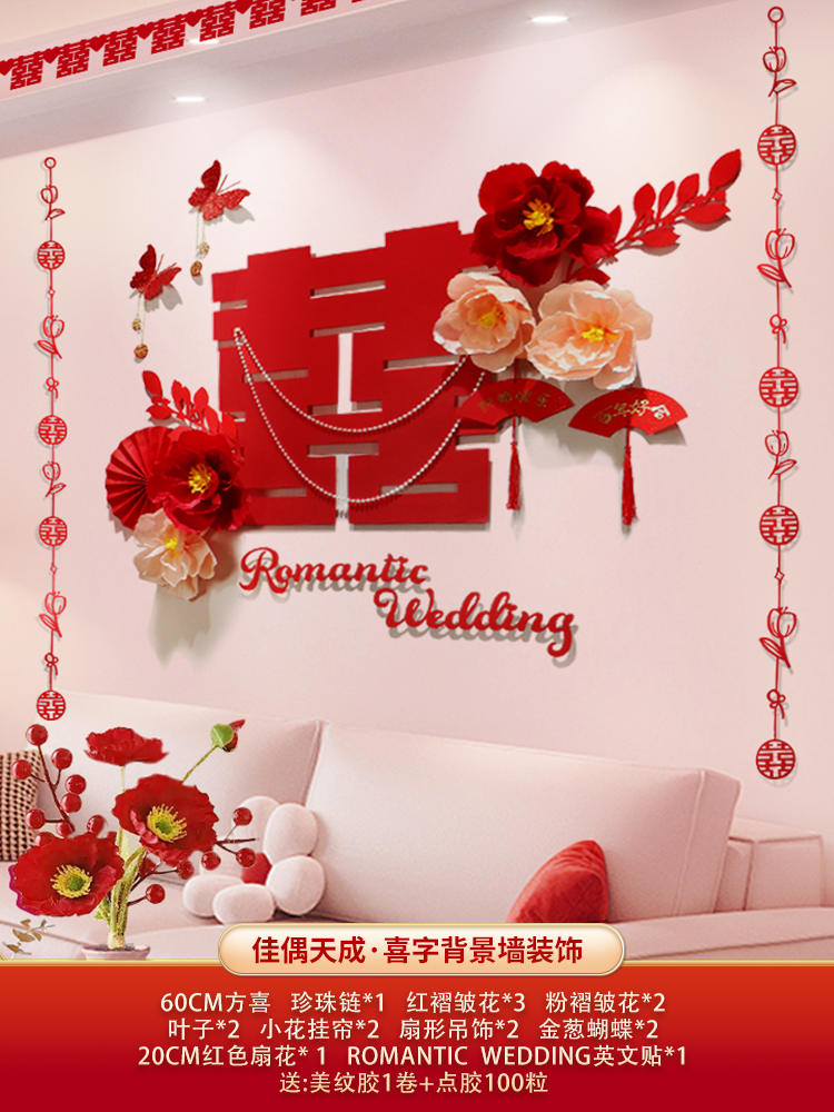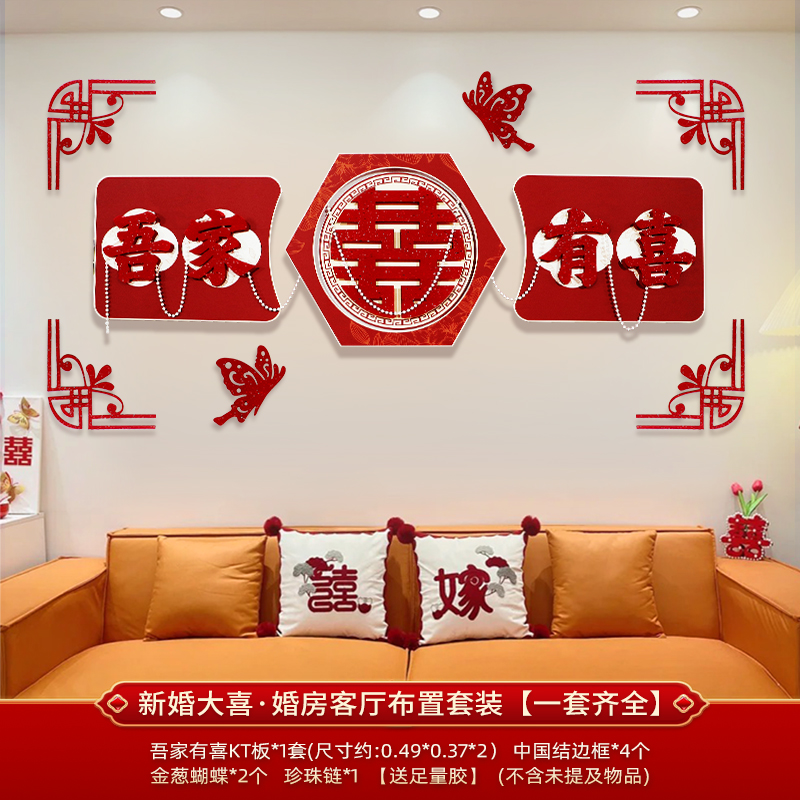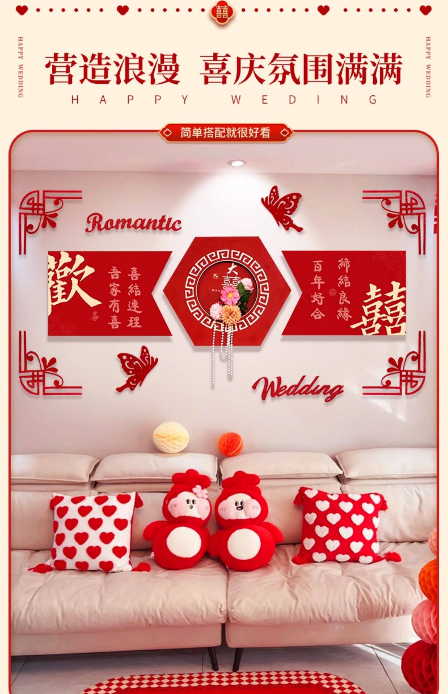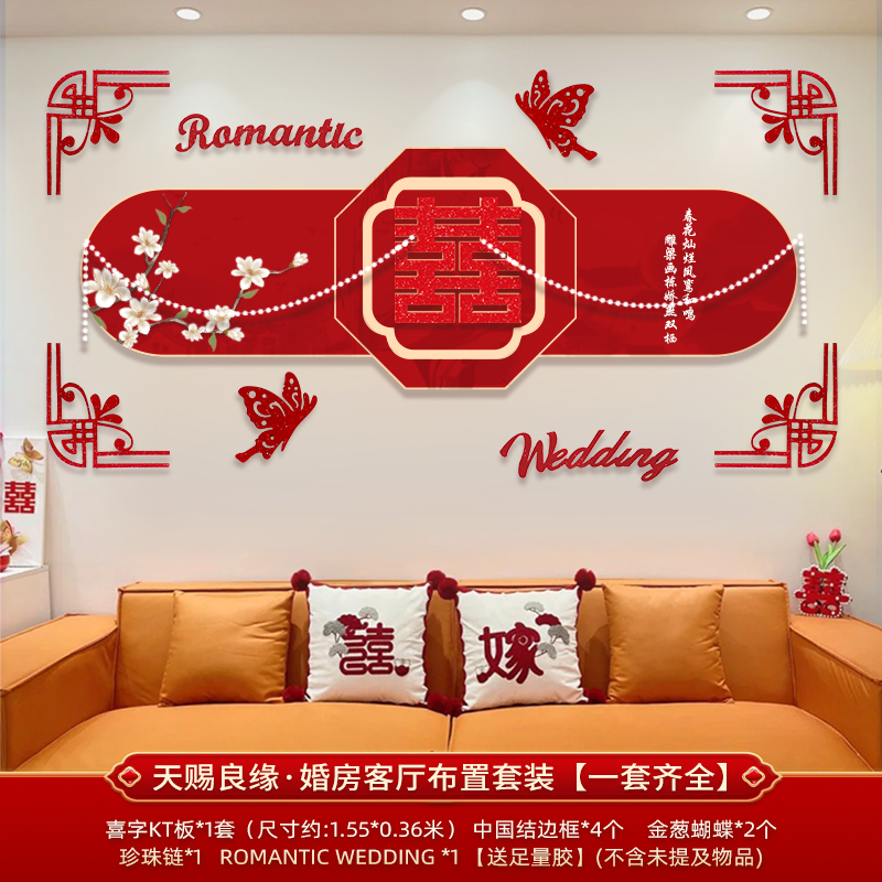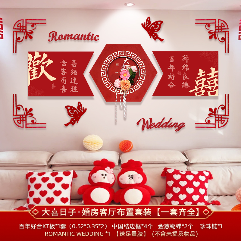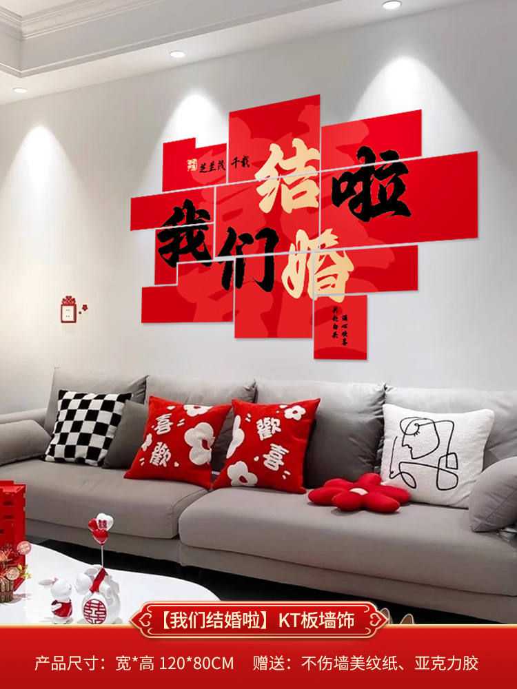 웨딩 룸 장식 소파 배경 벽 웨딩 장식 남성과 여성을위한 새 집 거실 웨딩 세트 해피 캐릭터 Kt 보드 벽 스티커스토어 가기