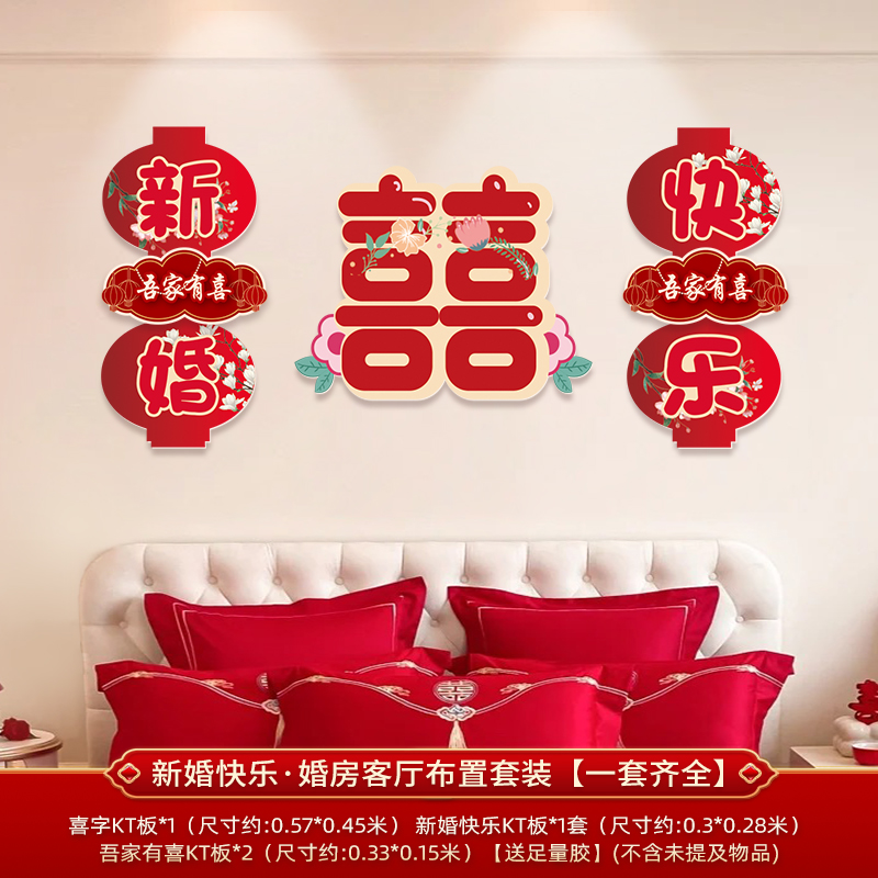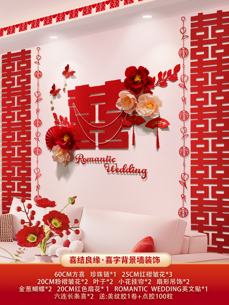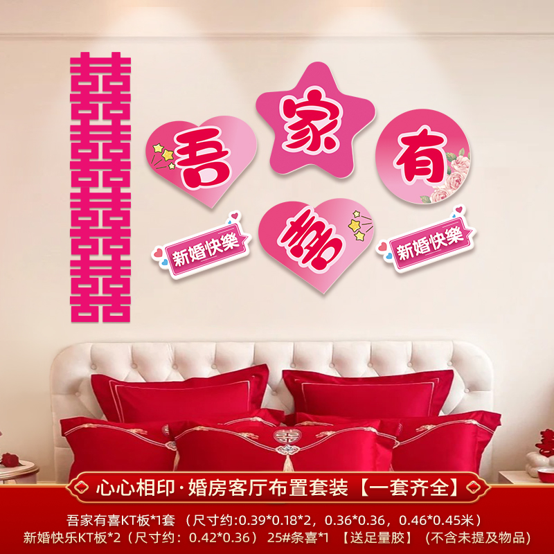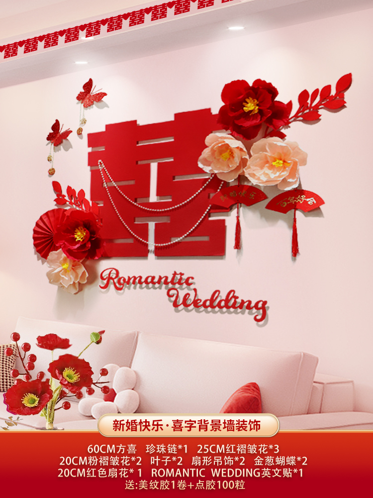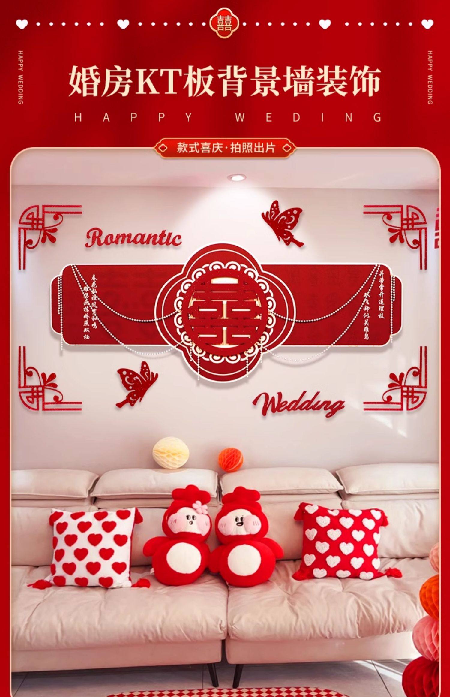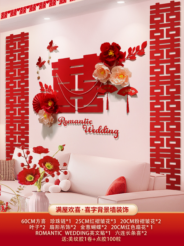 웨딩 룸 장식 소파 배경 벽 웨딩 장식 남성과 여성을위한 새 집 거실 웨딩 세트 해피 캐릭터 Kt 보드 벽 스티커스토어 가기