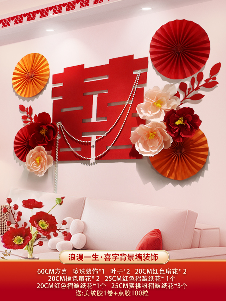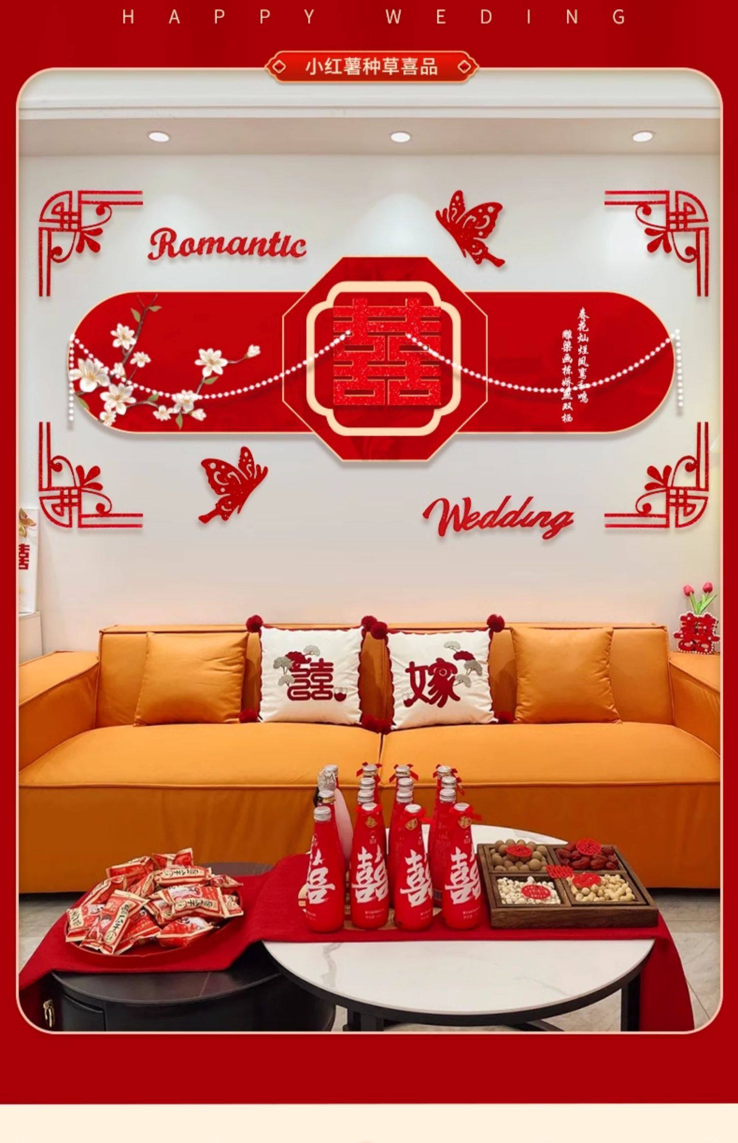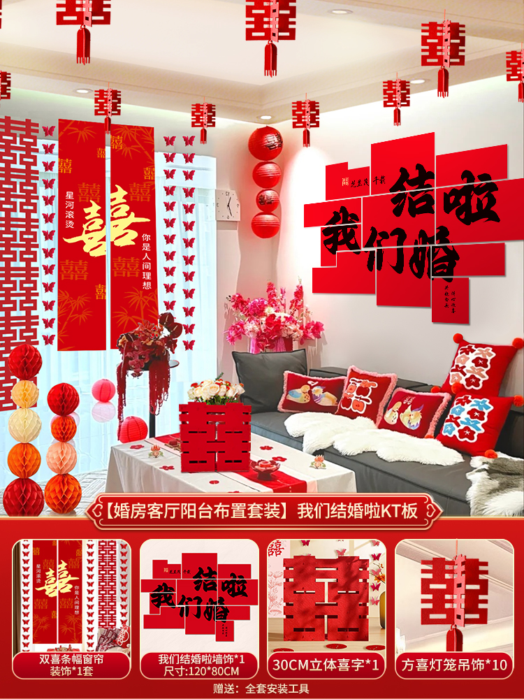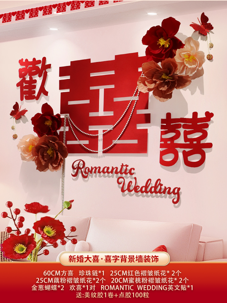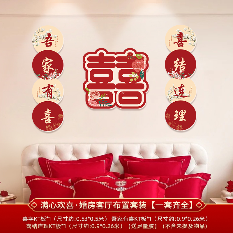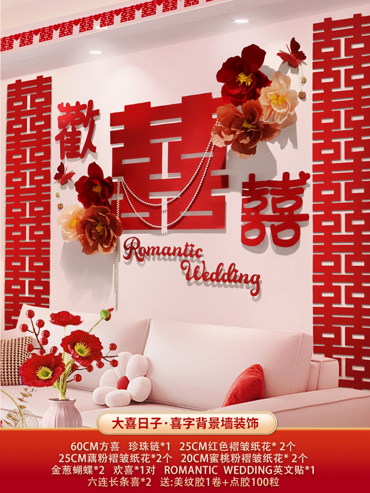 웨딩 룸 장식 소파 배경 벽 웨딩 장식 남성과 여성을위한 새 집 거실 웨딩 세트 해피 캐릭터 Kt 보드 벽 스티커스토어 가기