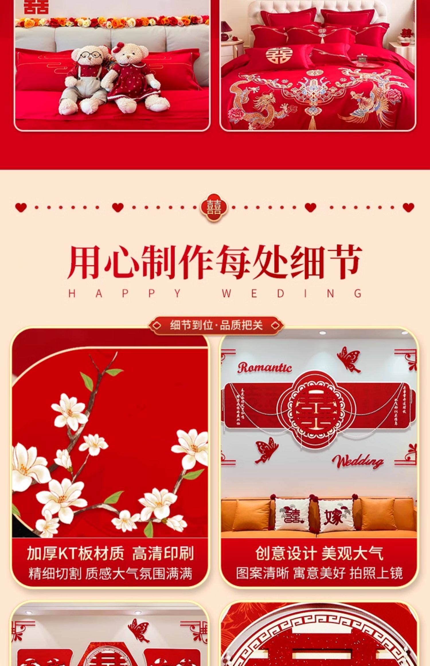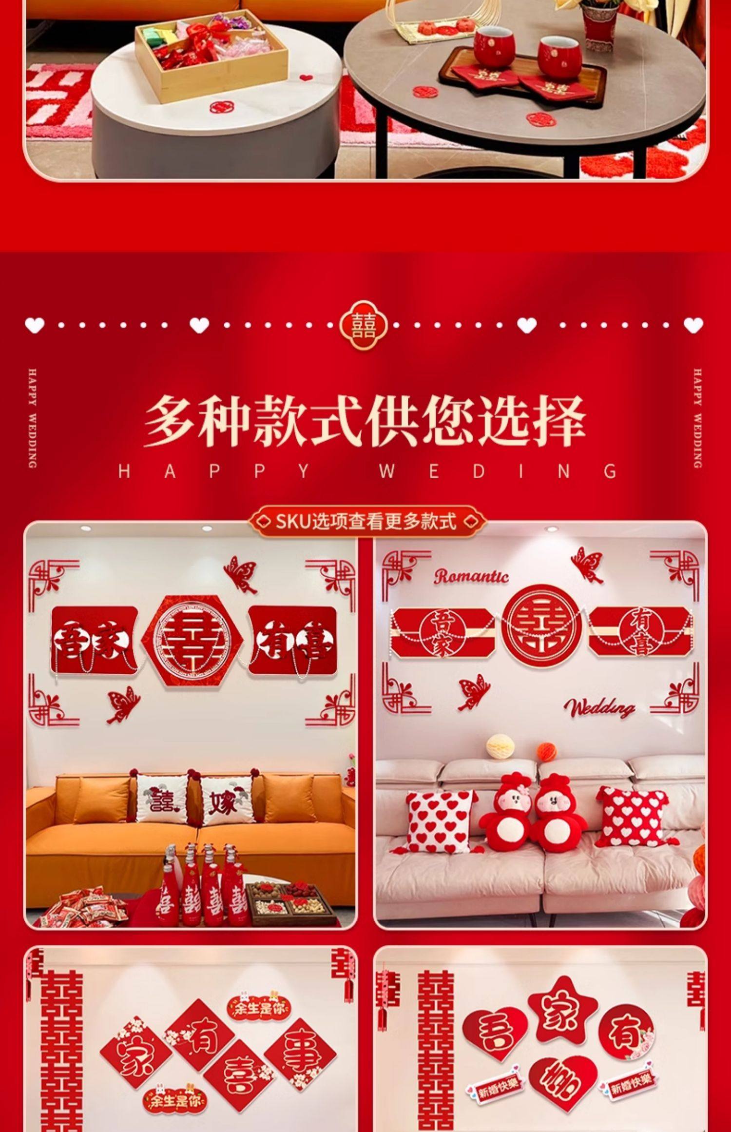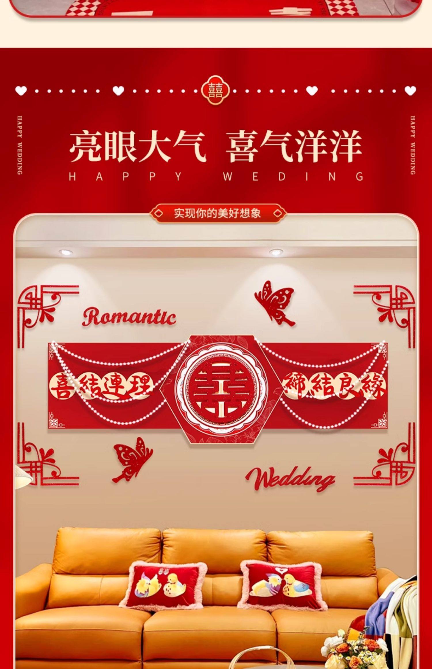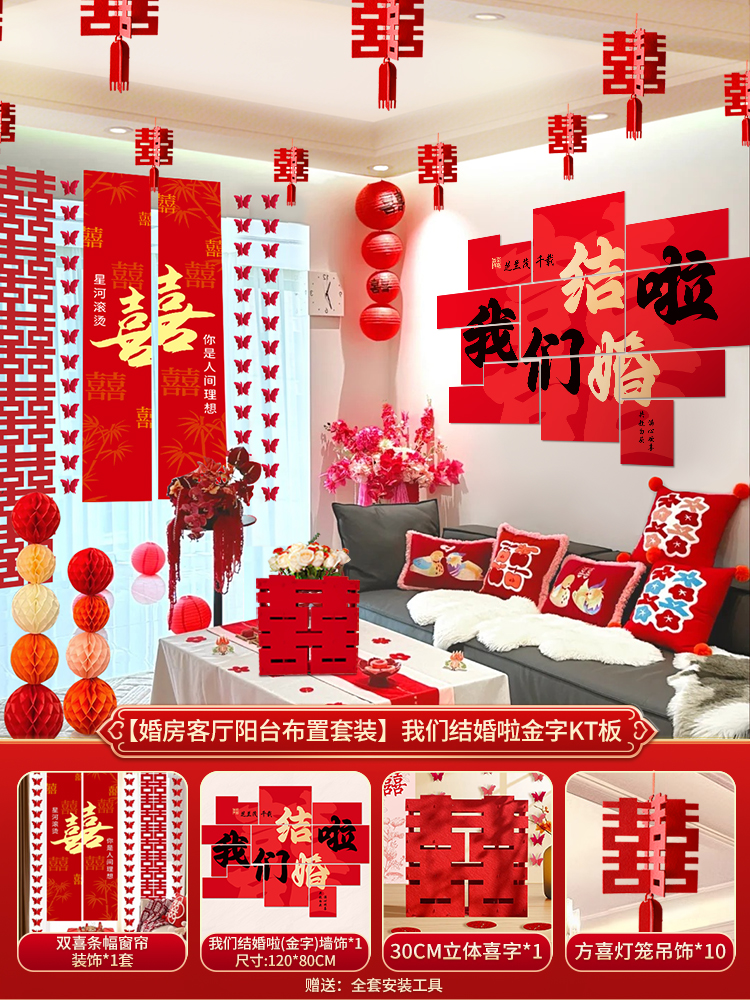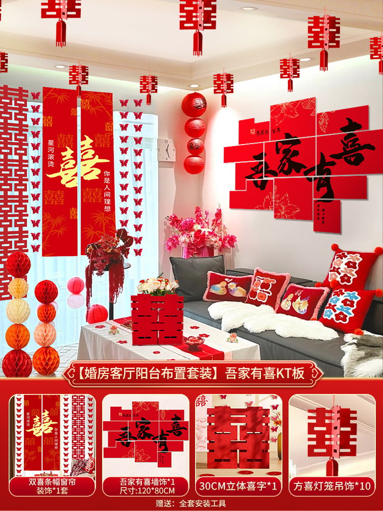 웨딩 룸 장식 소파 배경 벽 웨딩 장식 남성과 여성을위한 새 집 거실 웨딩 세트 해피 캐릭터 Kt 보드 벽 스티커스토어 가기
