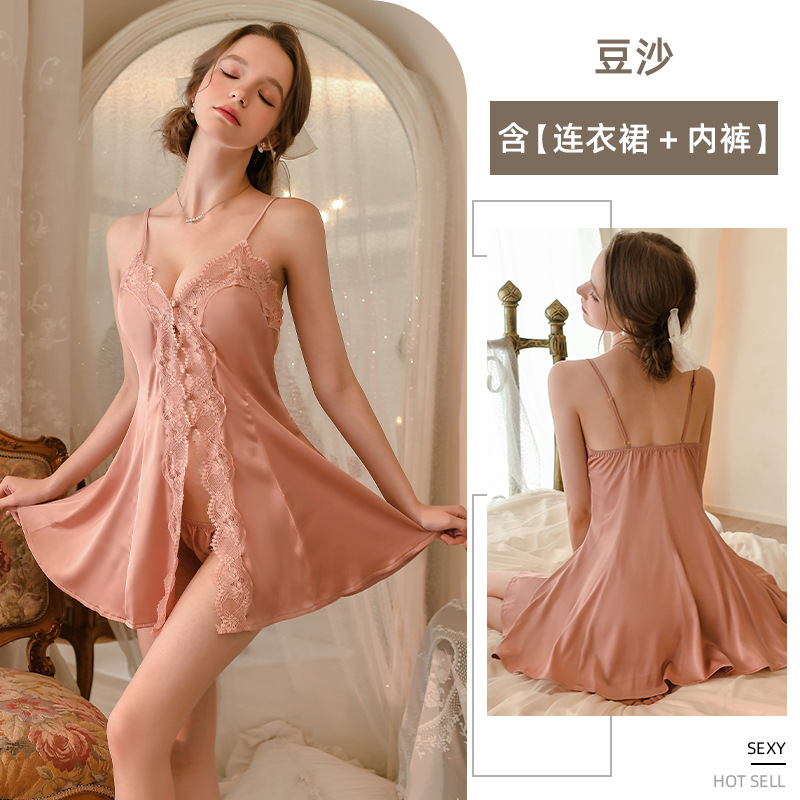 카메이쉐 섹시 잠옷 아이스 실크 슬립 드레스 순수한 매력 홈웨어 여성 얇고 편안한 고급스러운 유혹적인 잠옷 2153스토어 가기