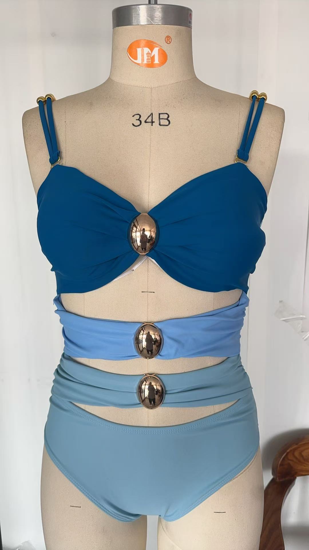 2025 유럽 및 미국 수출 신상 메탈 버클 장식 컷아웃 원피스 수영복 여성용 하이웨이스트 슬림 고급 비키니스토어 가기