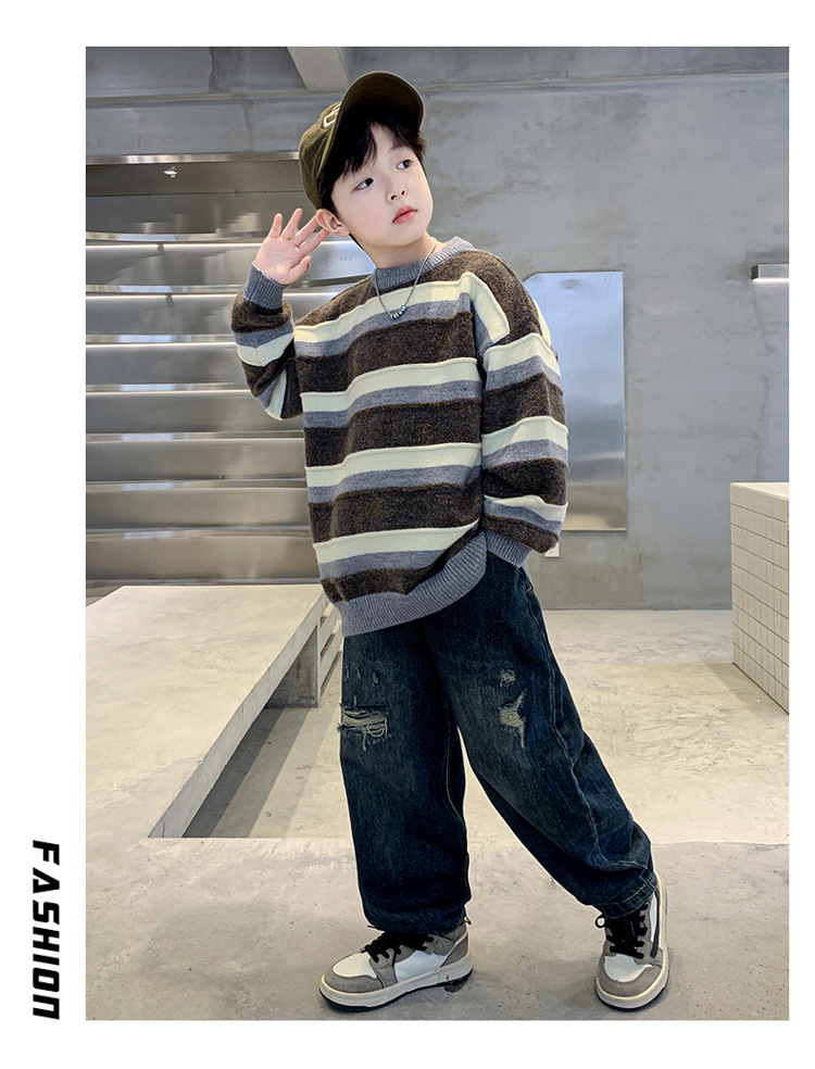 아동복 소년의 가을 풀오버 스웨터 2024 새로운 도착 빅 보이 봄 가을 니트웨어 가을 소년베이스 셔츠스토어 가기