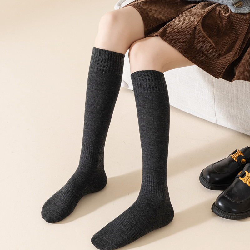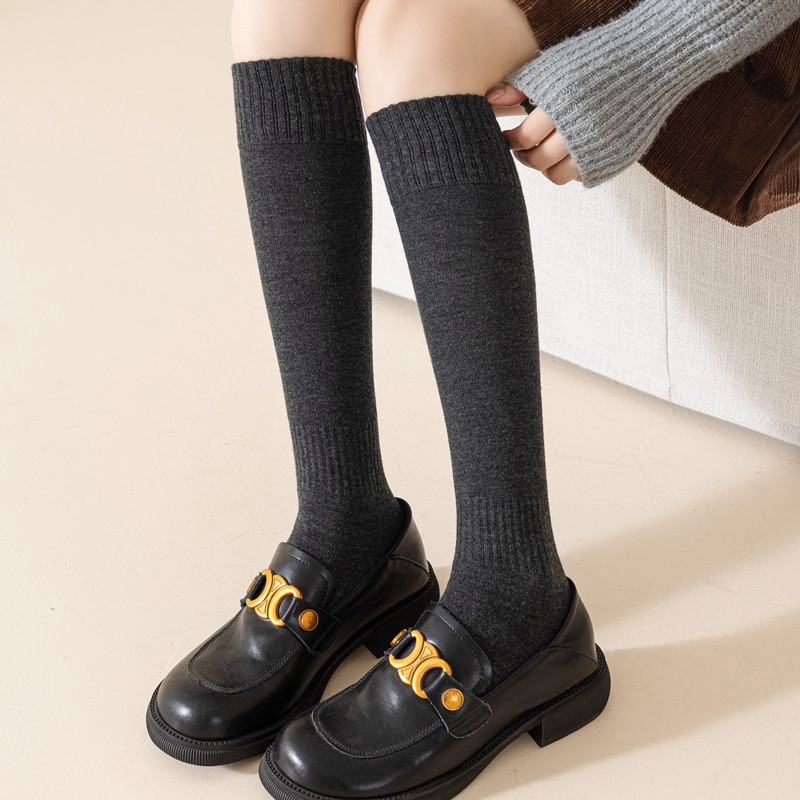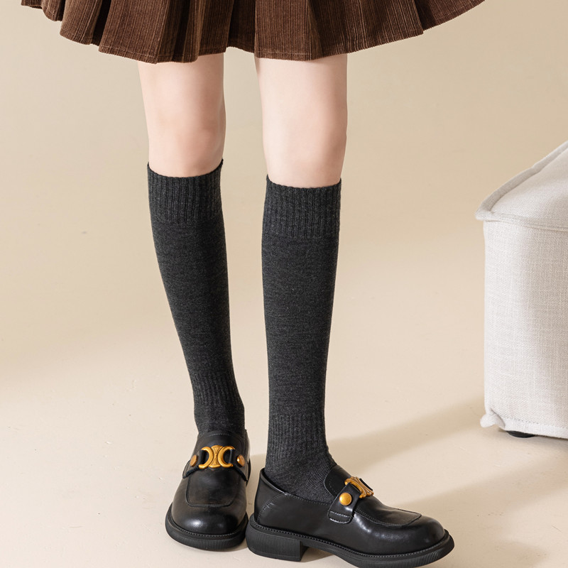 여자를위한 양모 긴 튜브 송아지 양말 가을 겨울 얇은 높은 튜브 따뜻한 단색 긴 양말 JK 마이크로 압력 미끄럼 미끄럼 방지 튜브스토어 가기