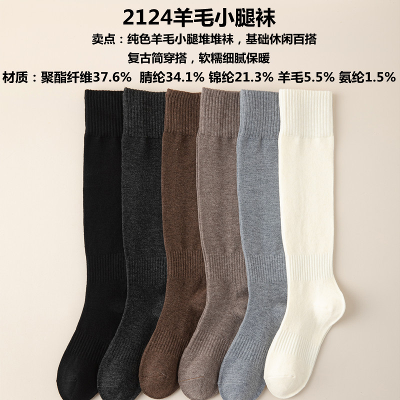 여자를위한 양모 긴 튜브 송아지 양말 가을 겨울 얇은 높은 튜브 따뜻한 단색 긴 양말 JK 마이크로 압력 미끄럼 미끄럼 방지 튜브
