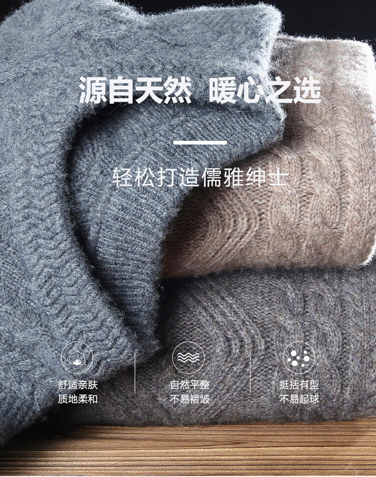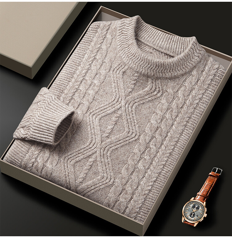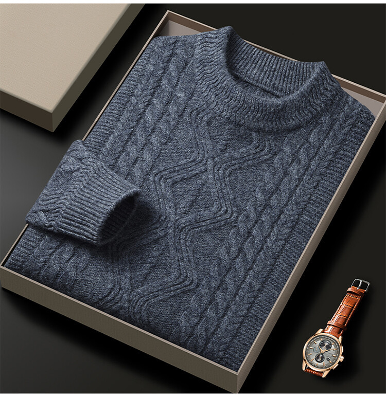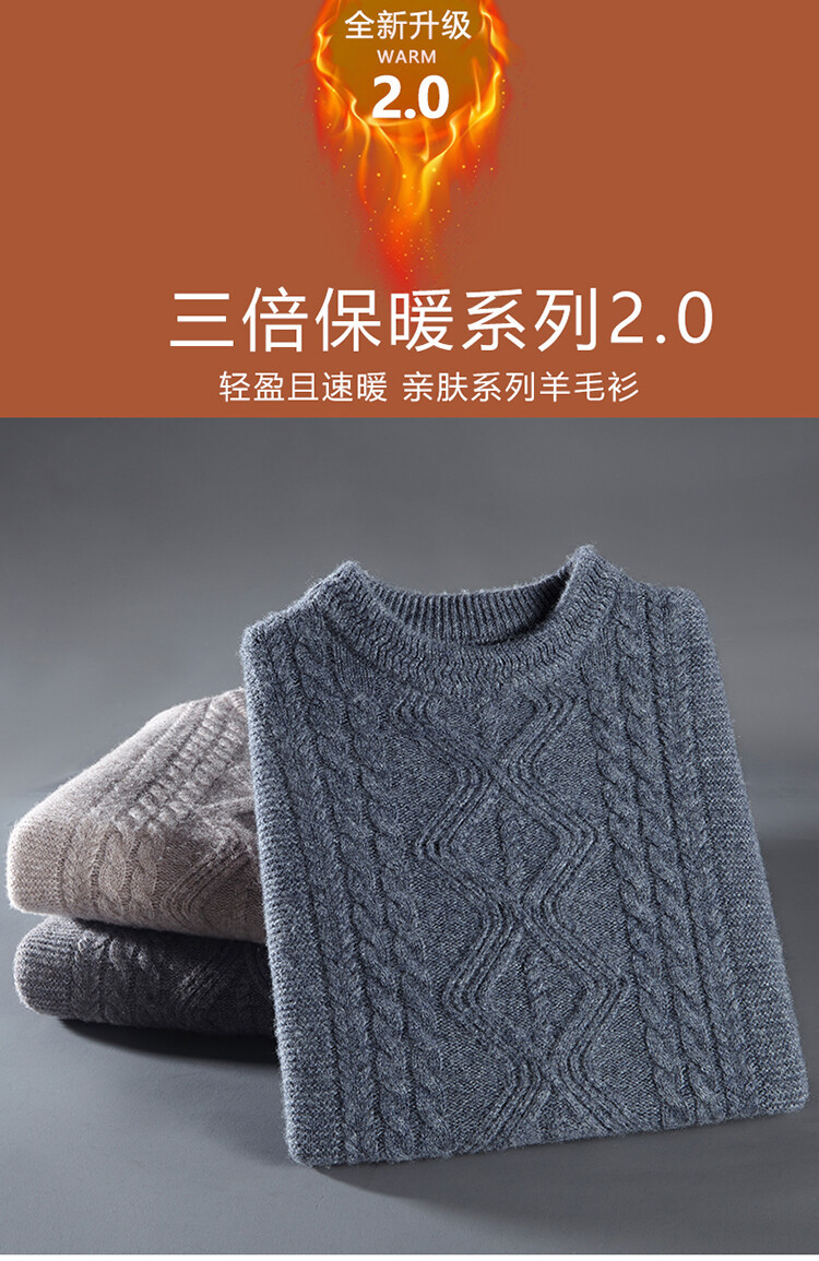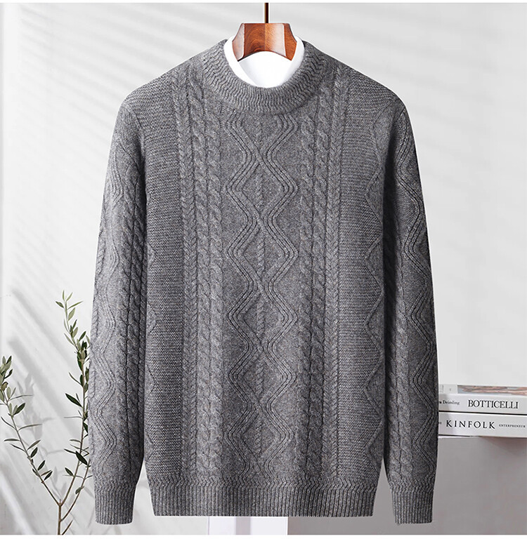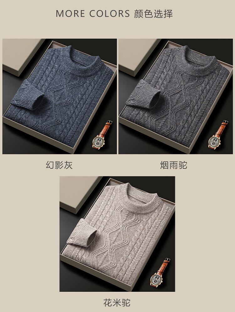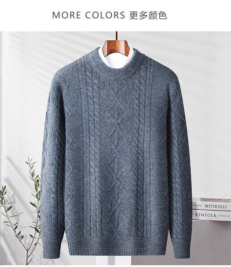 순수 모직 스웨터 남자 크루 넥 2024 가을과 겨울 트위스트 510g 모직 스웨터 중년 남성베이스 셔츠스토어 가기