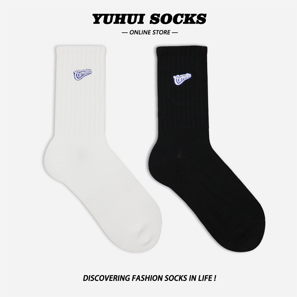 미국 스타일의 트렌디 한 편지 화이트 양말 간단한 자수 영어 거리 스포츠 중간 길이 양말 남성과 여성의 순수 면화 스타킹