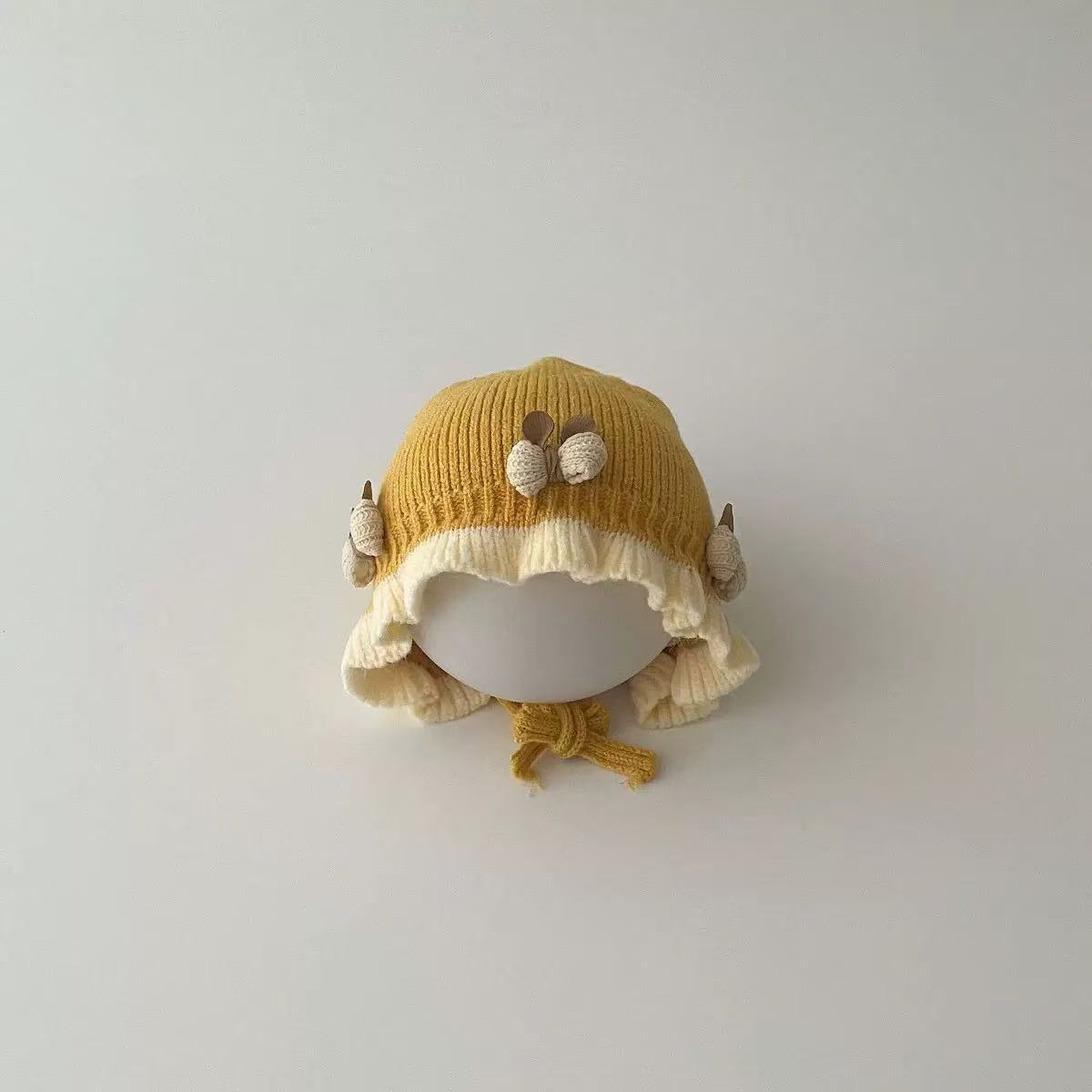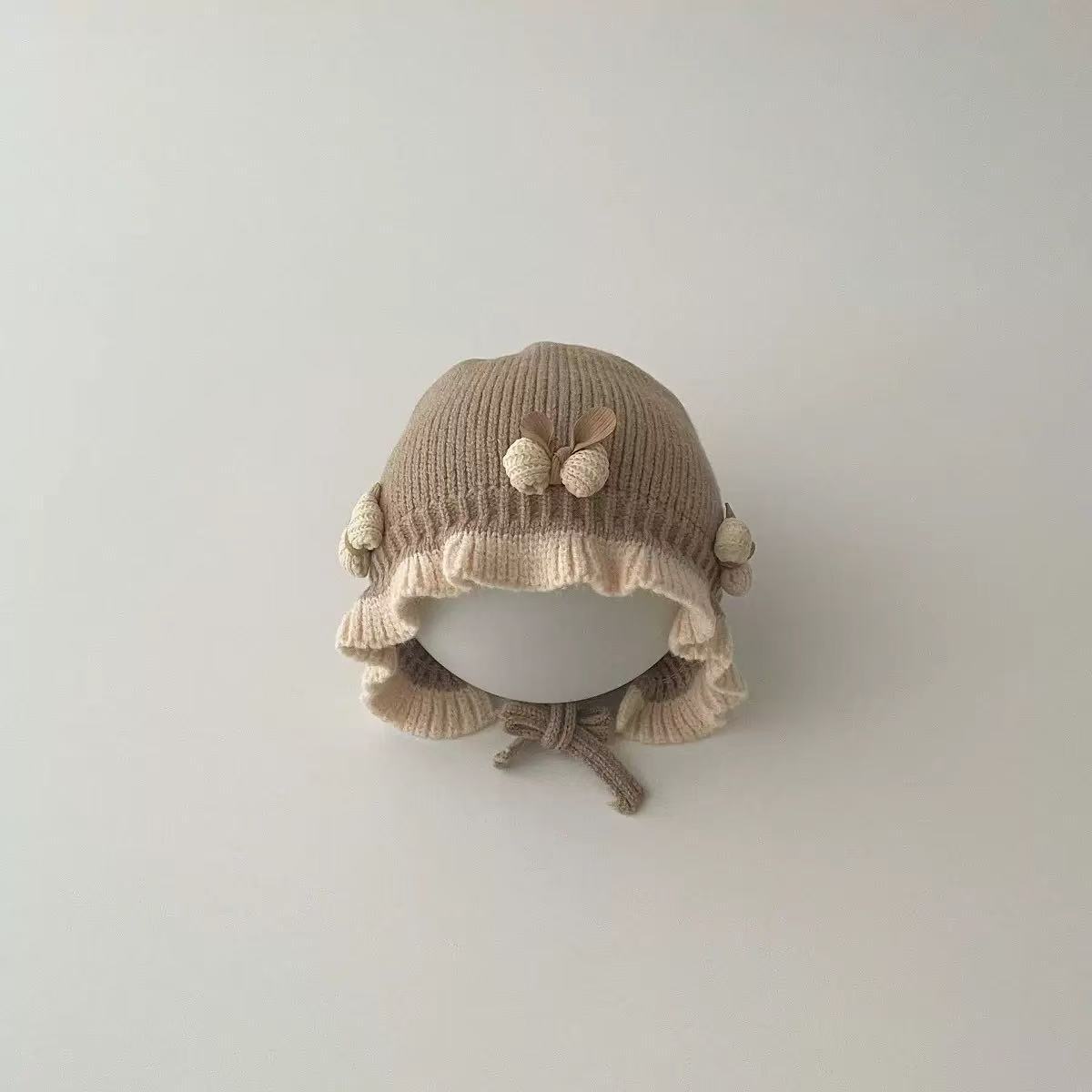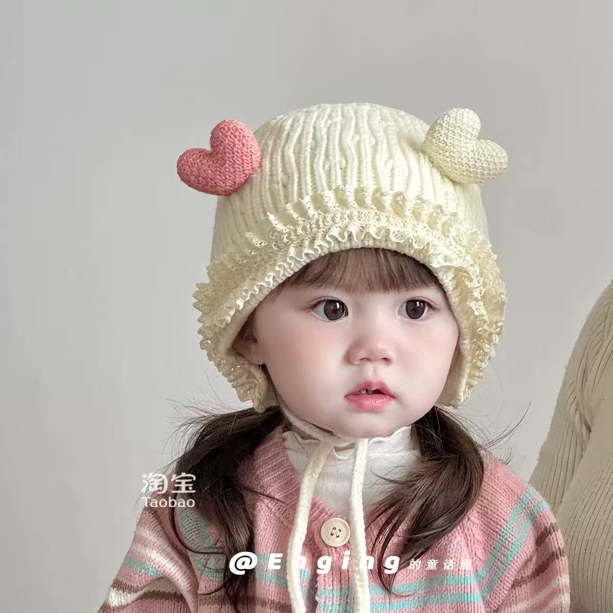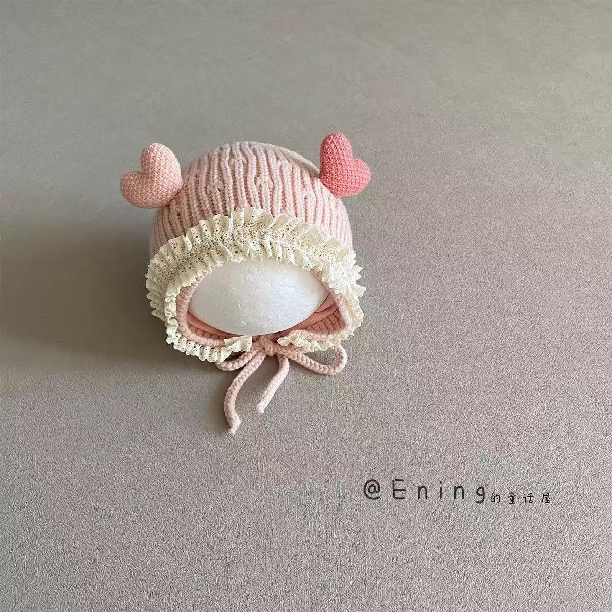 아기 양모 모자 가을과 겨울 슈퍼 귀여운 작은 버섯 레이스 업 귀 보호 모자 아기 따뜻한 모자 겨울스토어 가기
