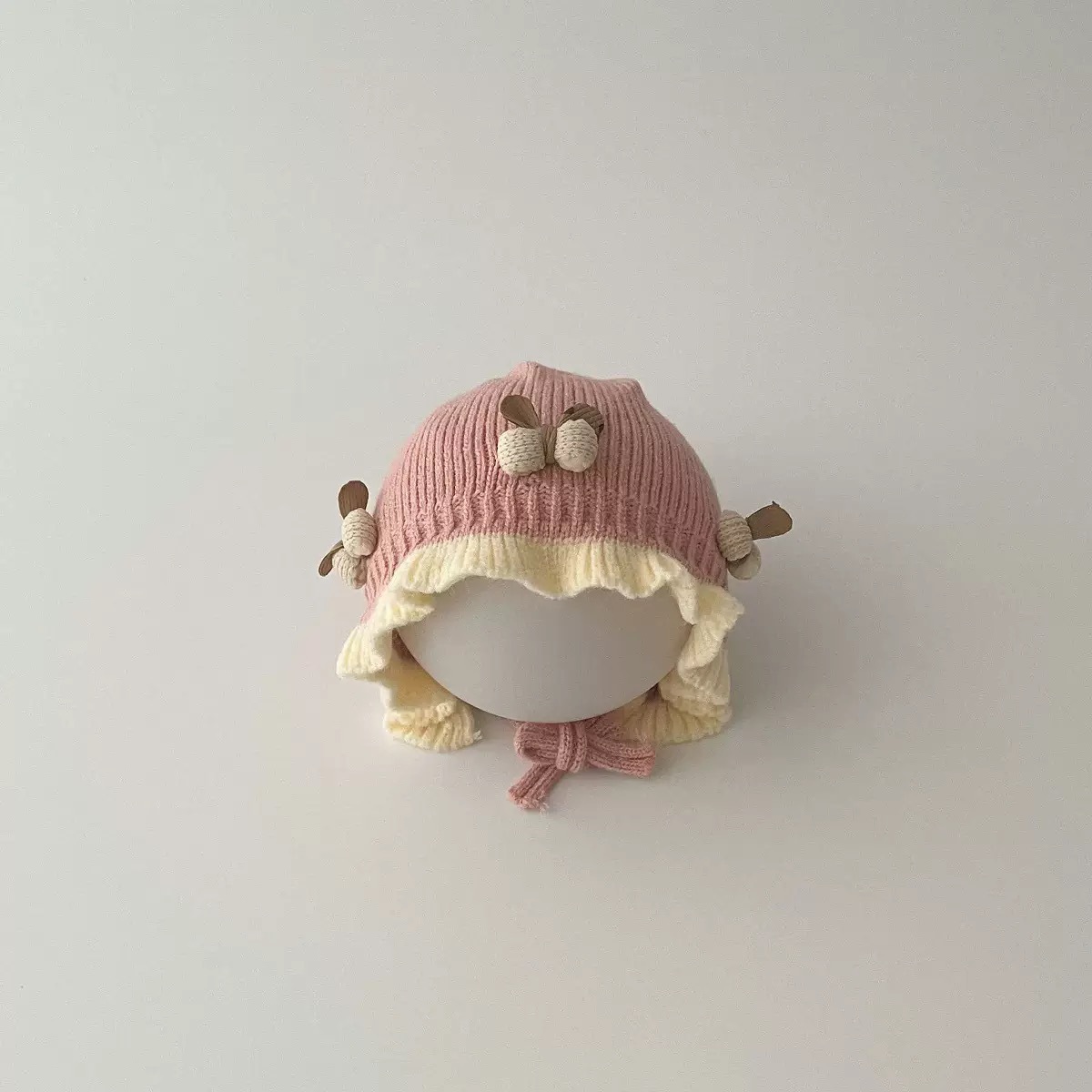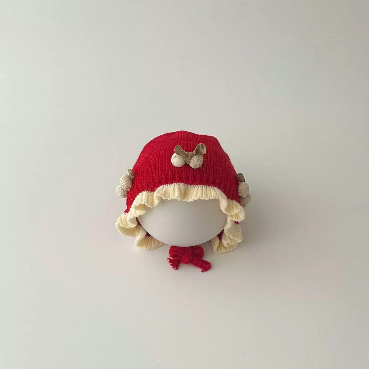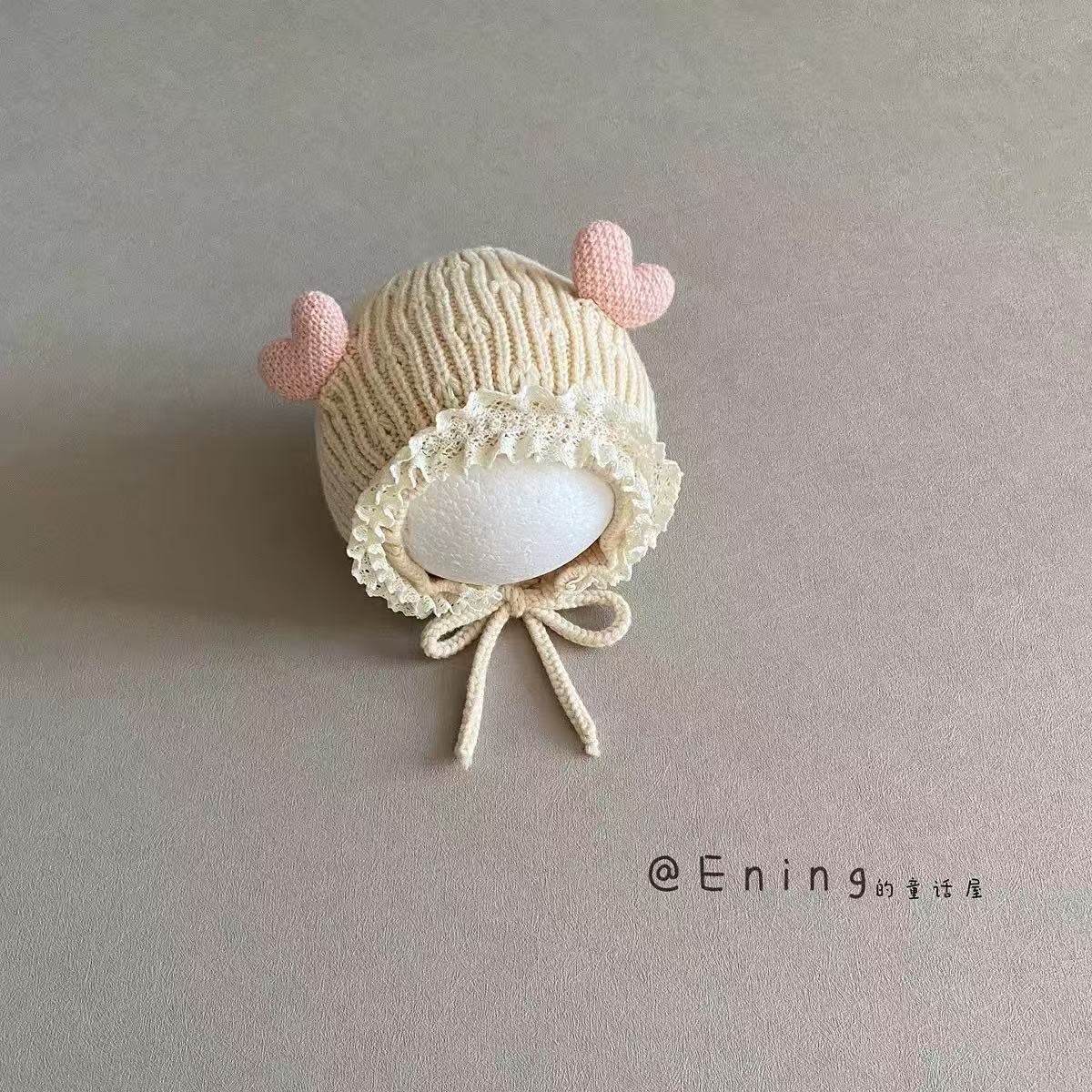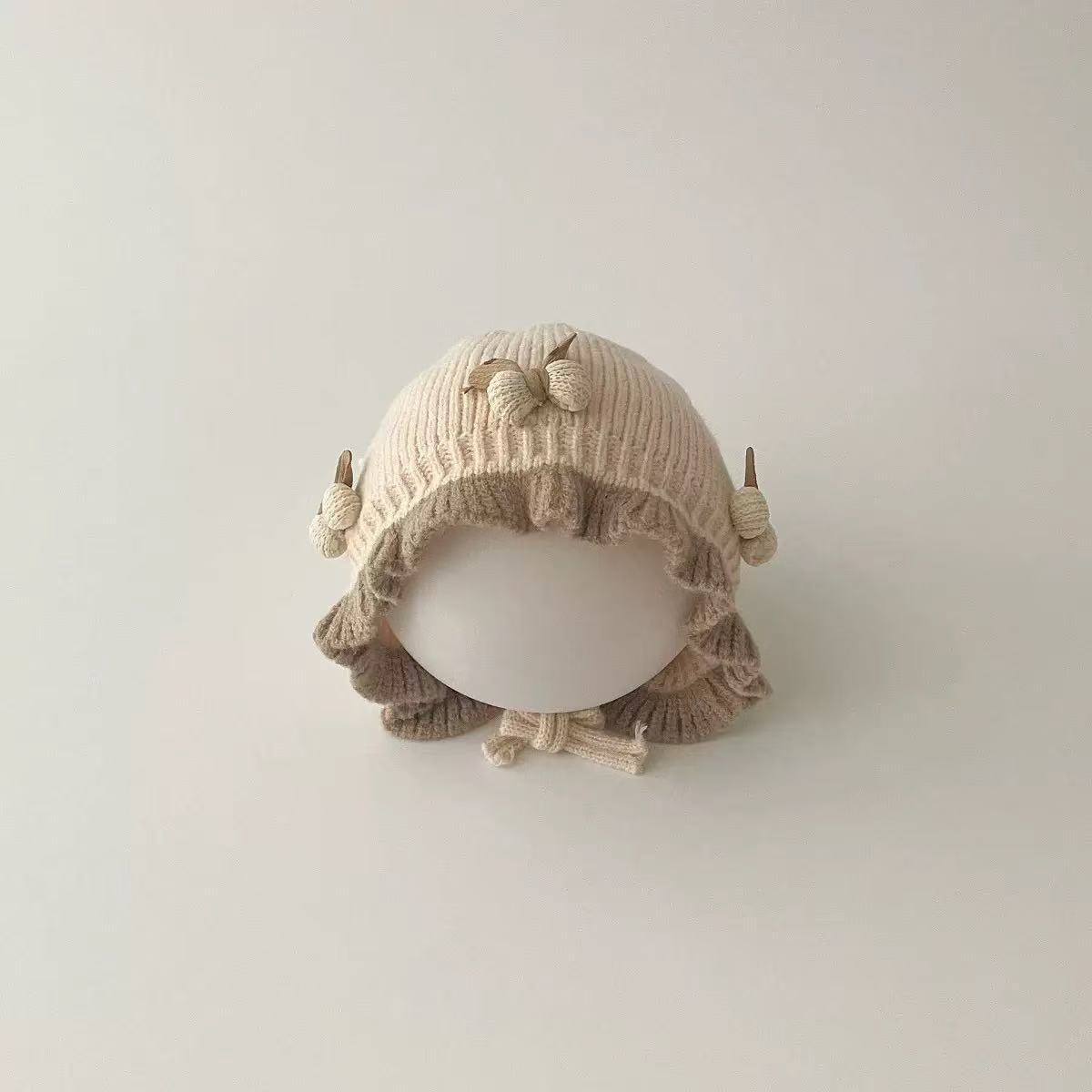 아기 양모 모자 가을과 겨울 슈퍼 귀여운 작은 버섯 레이스 업 귀 보호 모자 아기 따뜻한 모자 겨울스토어 가기