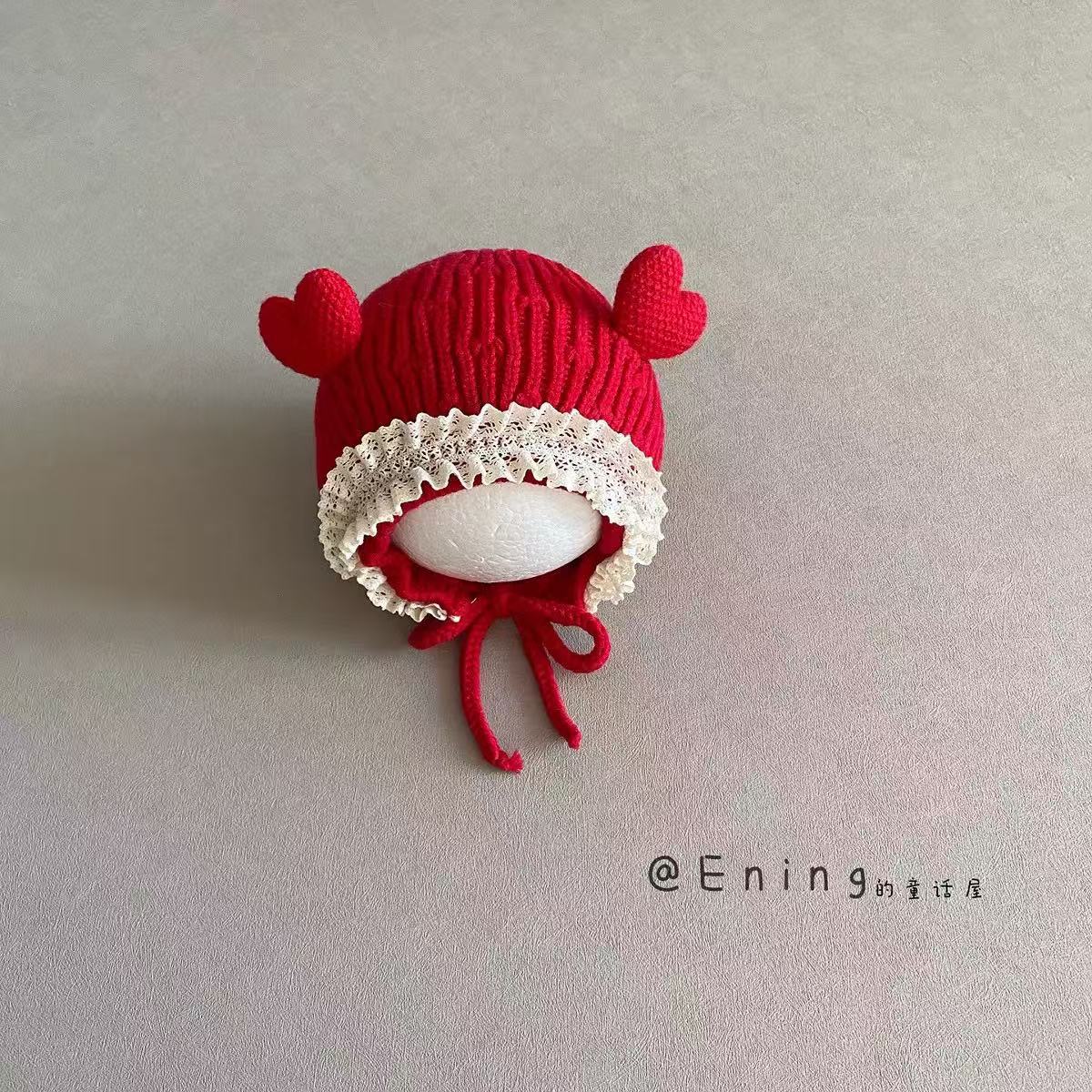 아기 양모 모자 가을과 겨울 슈퍼 귀여운 작은 버섯 레이스 업 귀 보호 모자 아기 따뜻한 모자 겨울