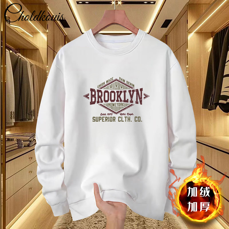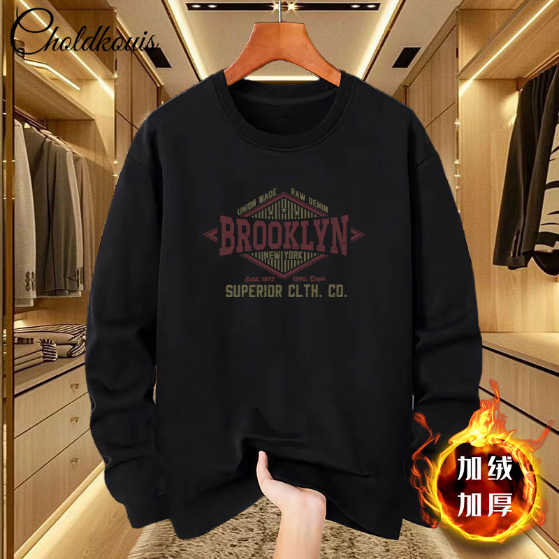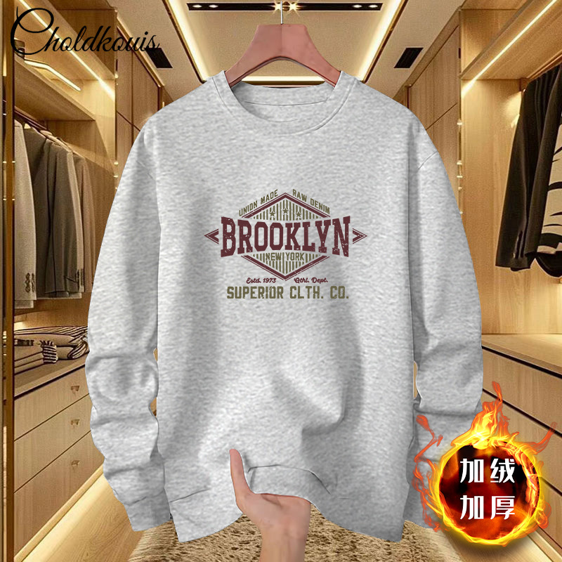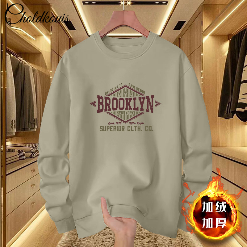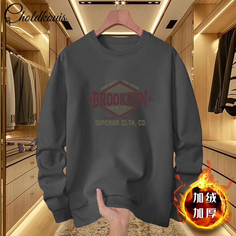 스웨트 셔츠 남자 라운드 넥 겨울 새로운 패셔너블 루즈 올 매치 남자 기모 두꺼운 코트 홍콩 스타일 탑 옷스토어 가기