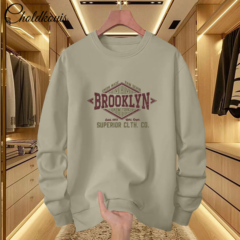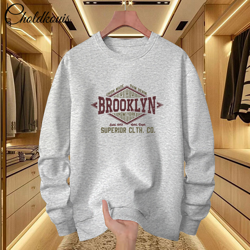 • 오트밀 그레이 라운드넥 스웨트셔츠 플러스 플리스 스타일-265【GL】