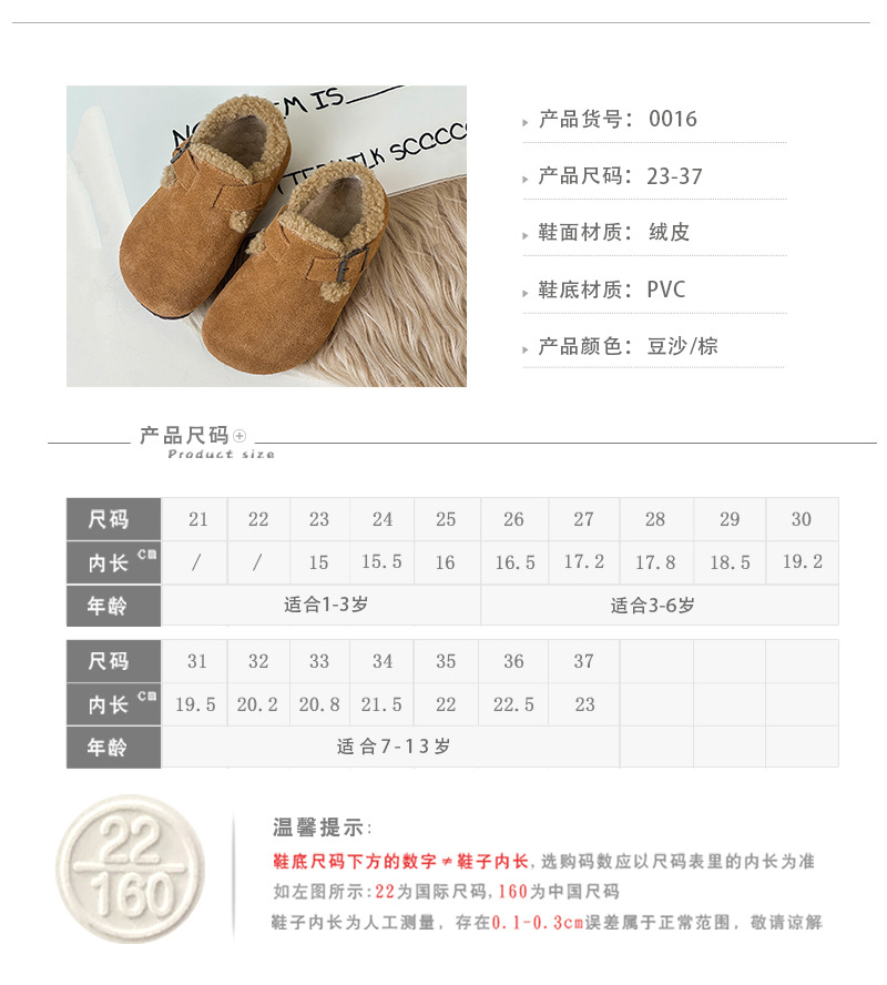 아동용 겨울 신발, 아동용 플러스 사이즈 베르켄 슈즈, 인기 여아용 면화 신발, 무광 가죽 신발, 양털 안감 면화 신발스토어 가기