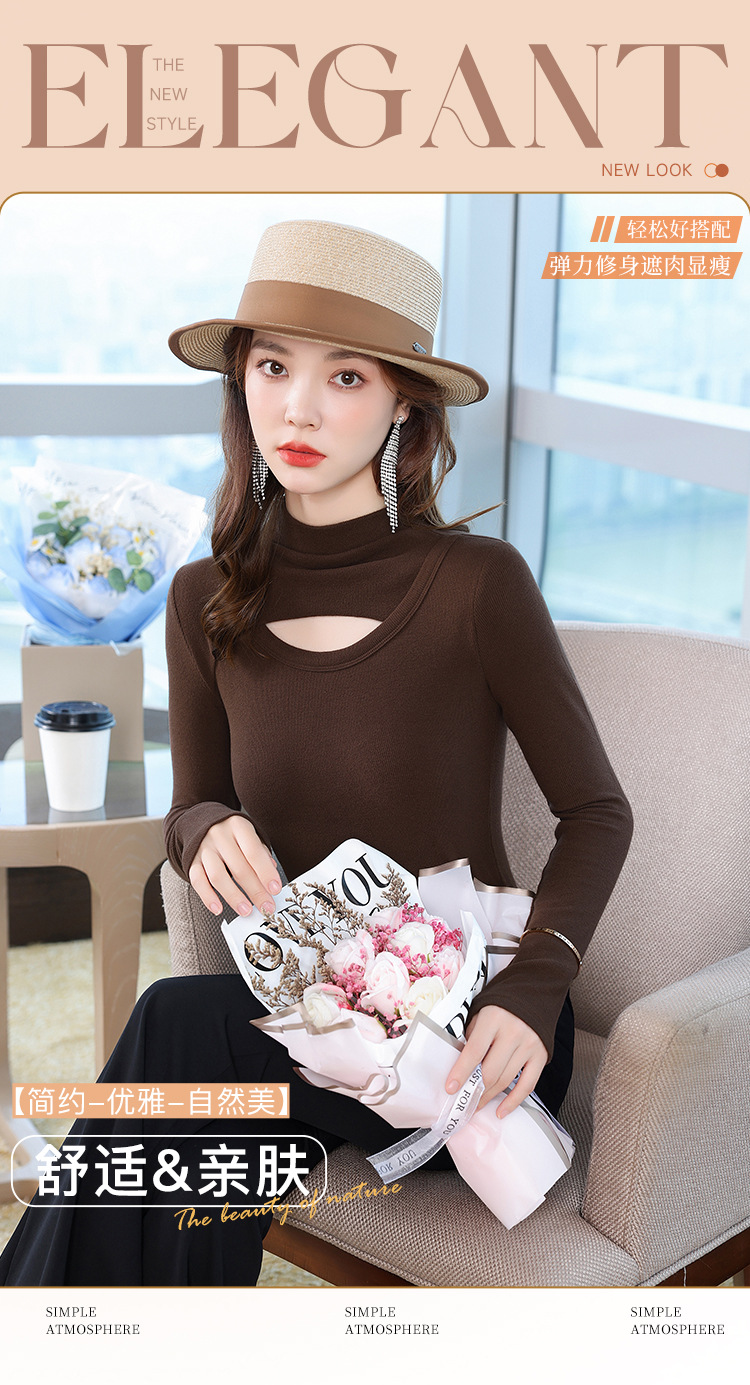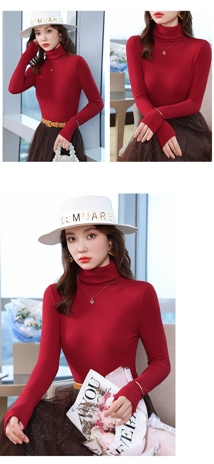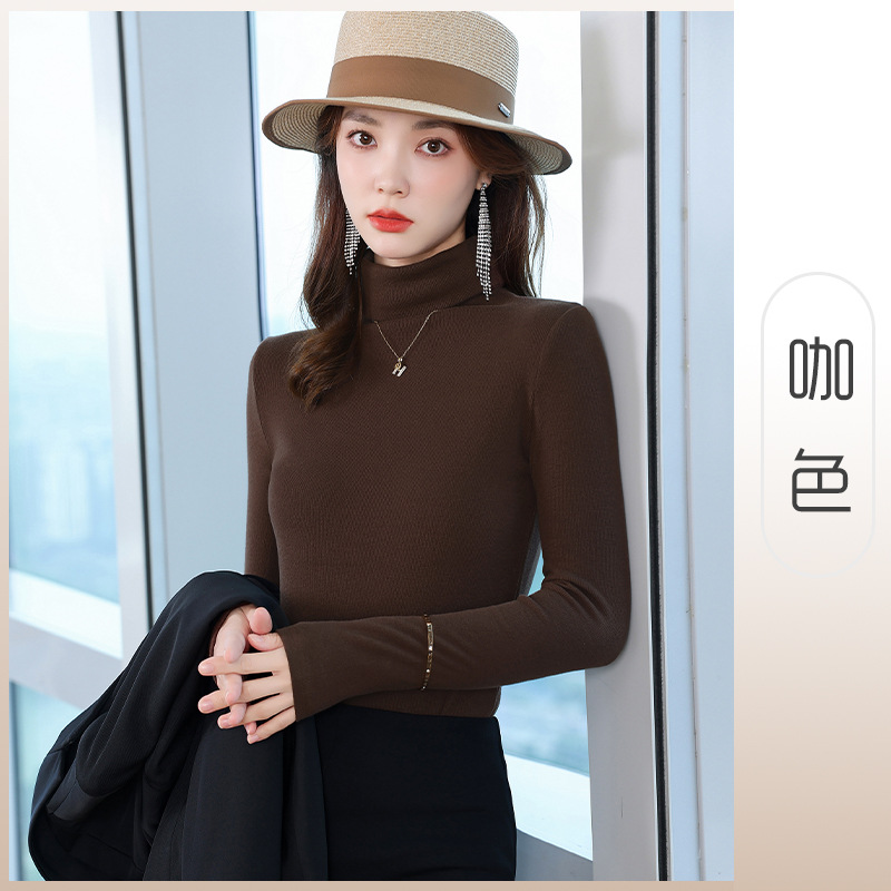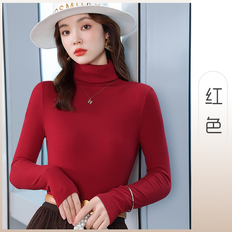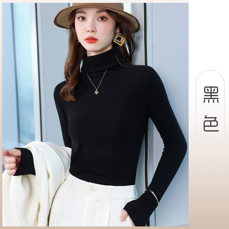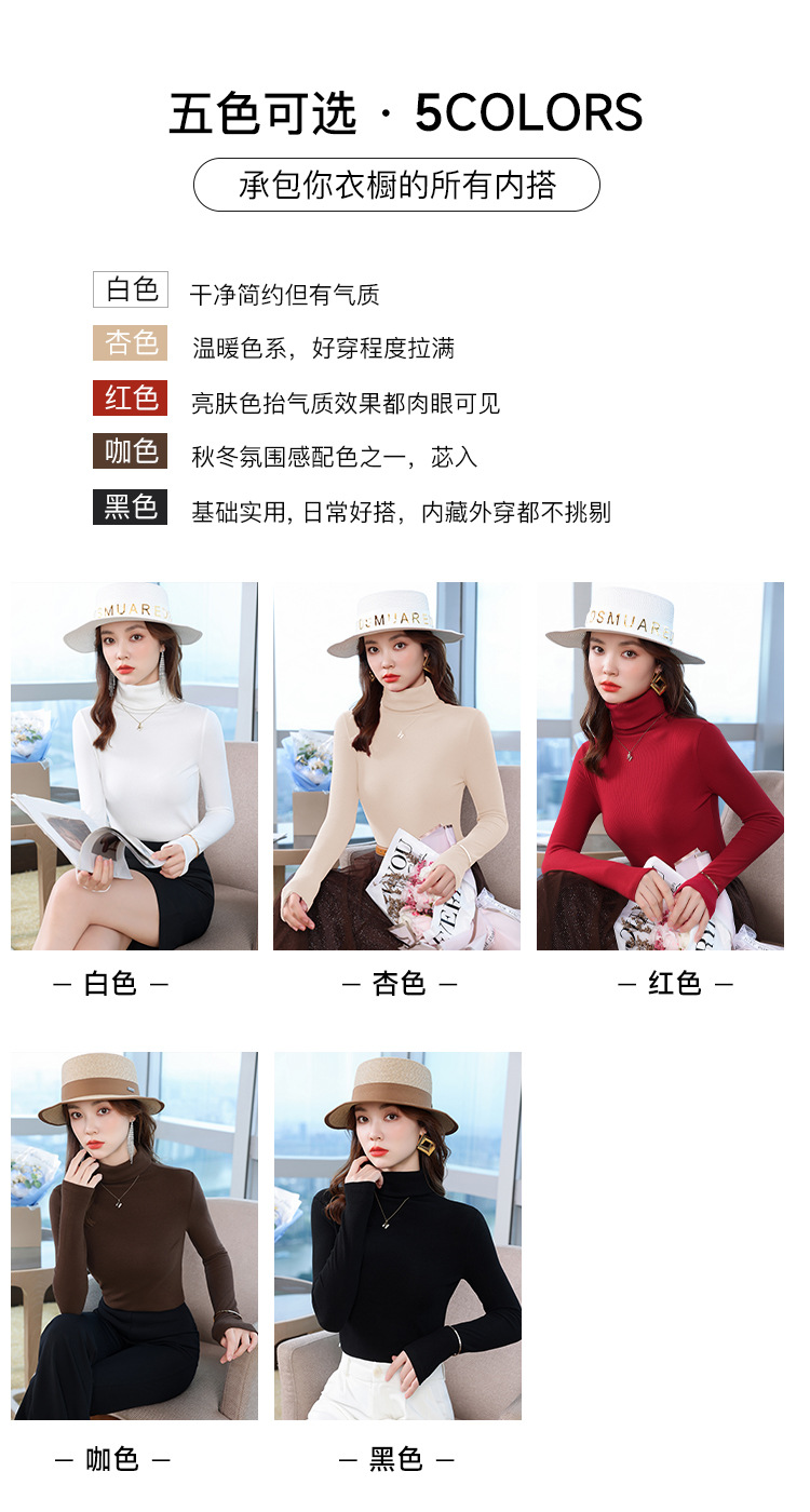 Qigu Niang 터틀넥 스웨터 여성의 봄과 가을 2024 새로운 슬림 핏 슬리밍 양면 벨벳베이스 내부 탑스토어 가기