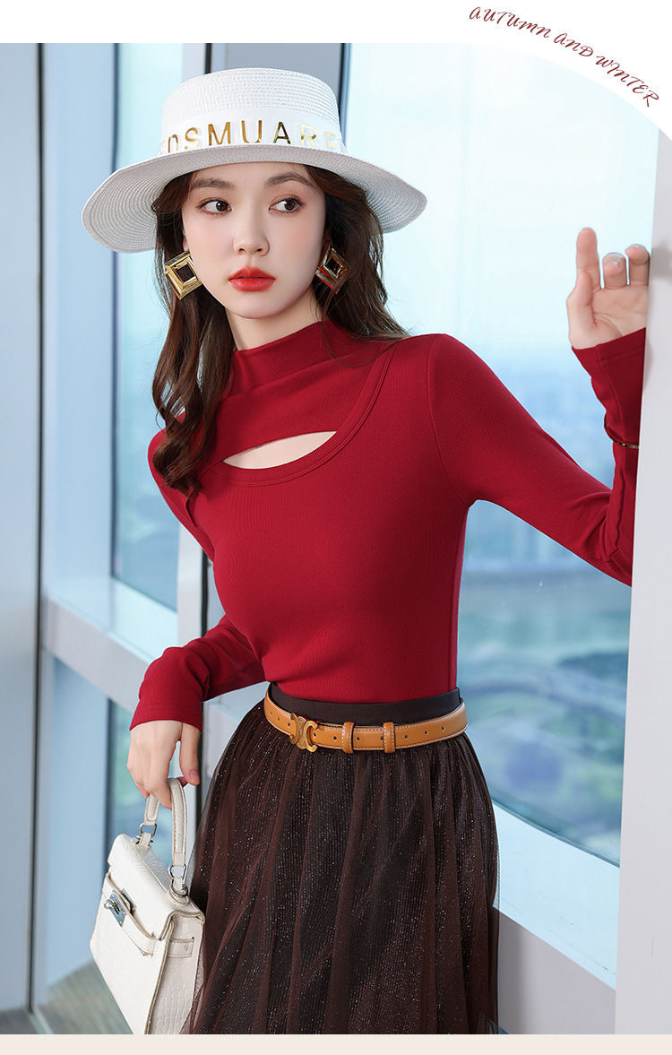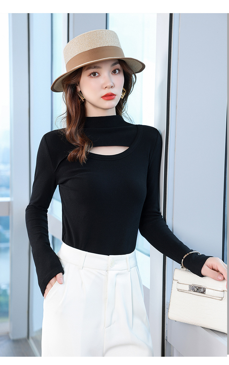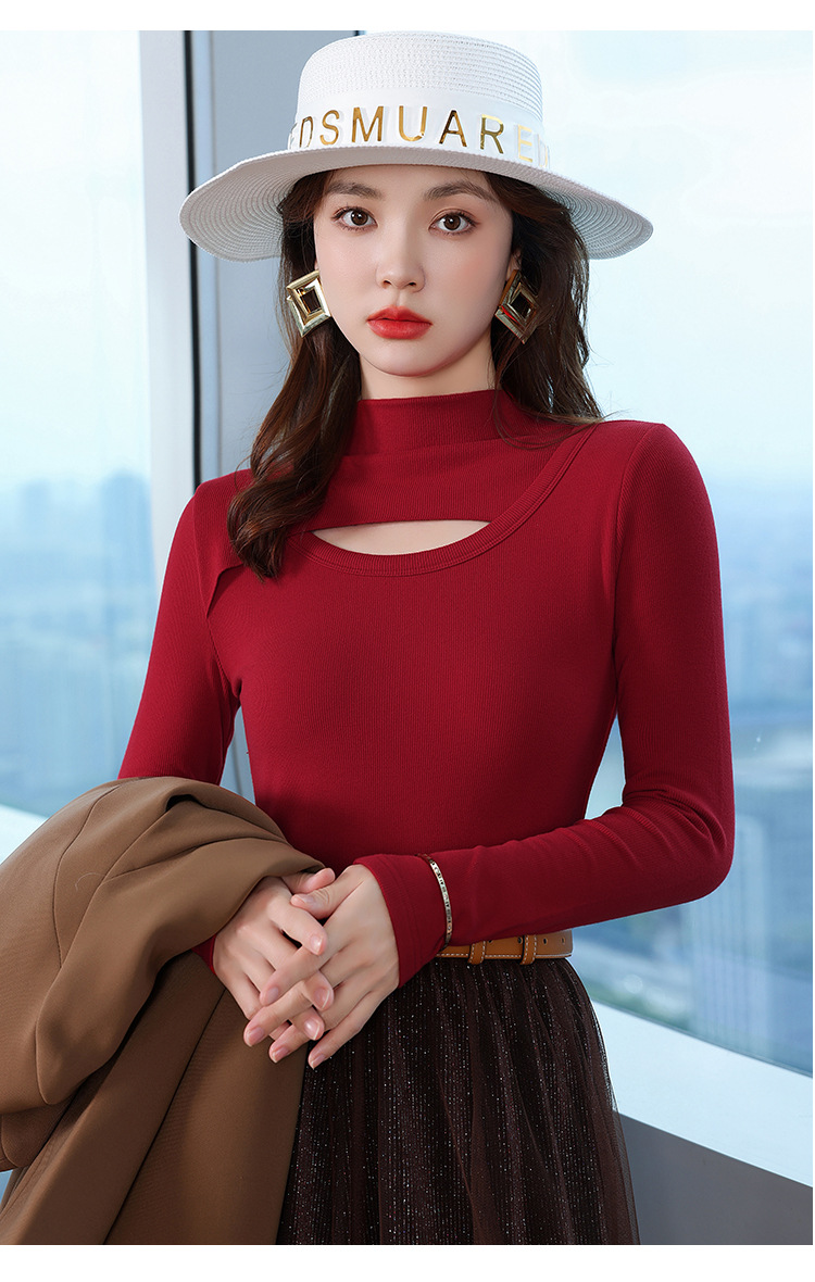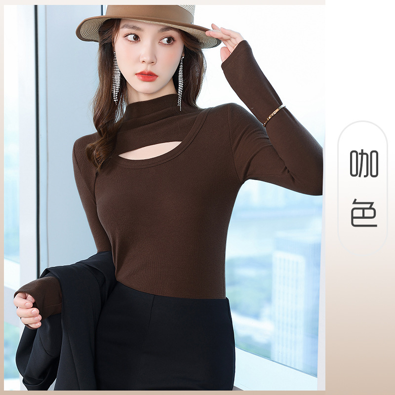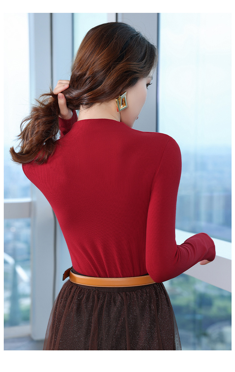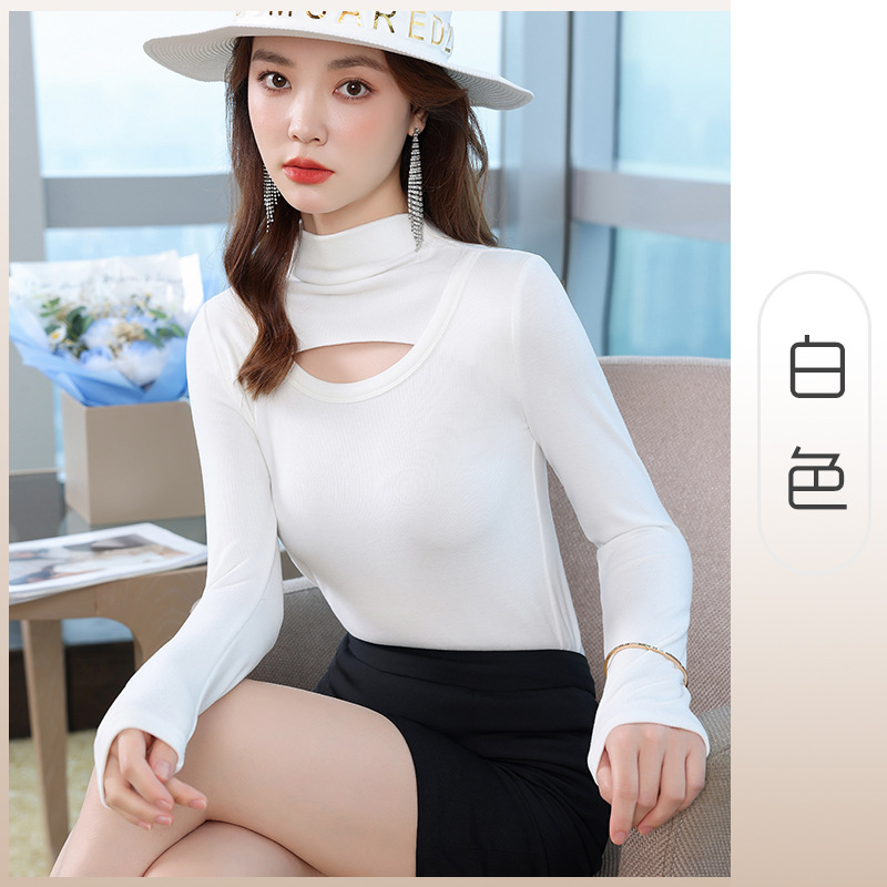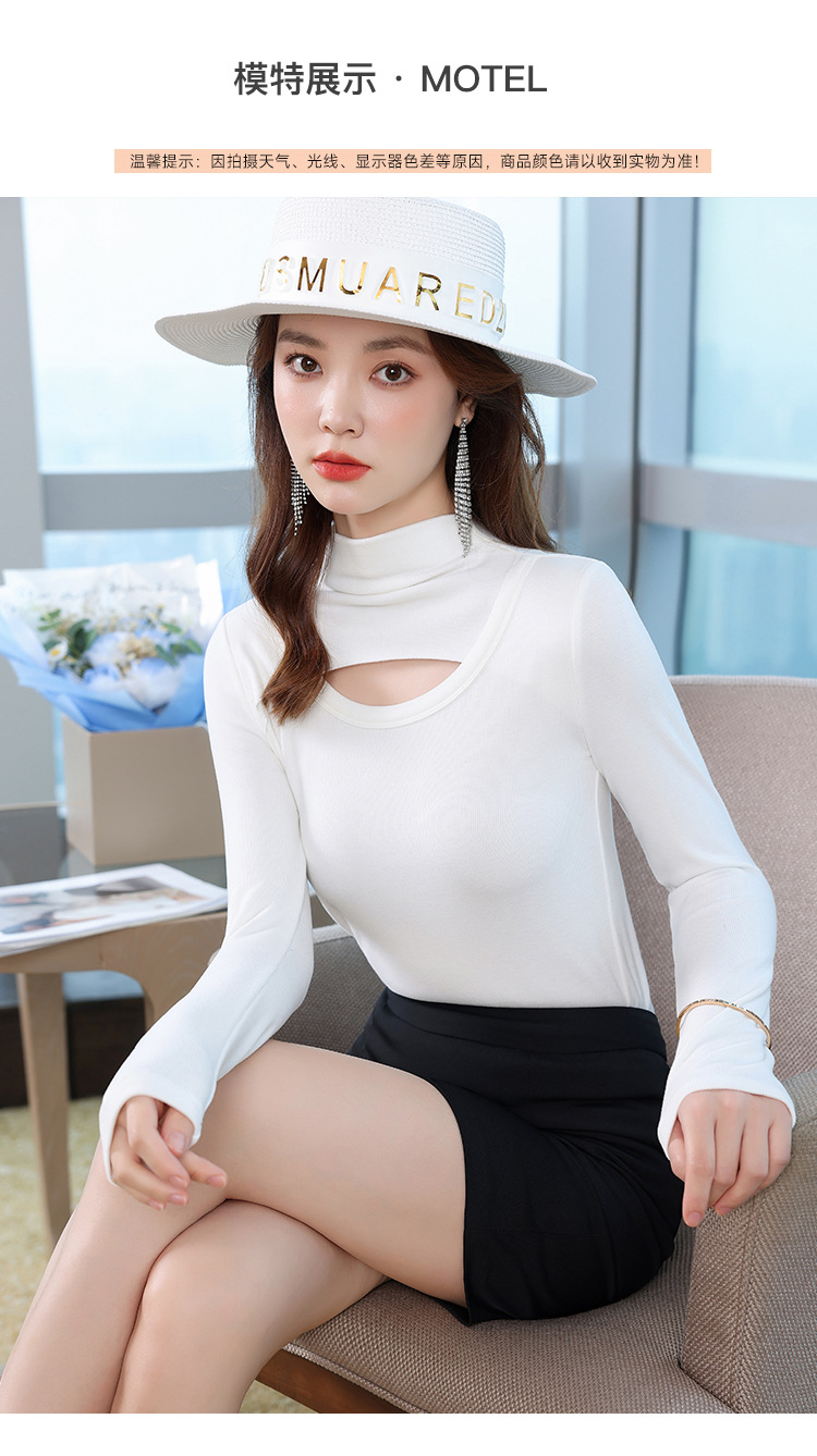 Qigu Niang 터틀넥 스웨터 여성의 봄과 가을 2024 새로운 슬림 핏 슬리밍 양면 벨벳베이스 내부 탑스토어 가기