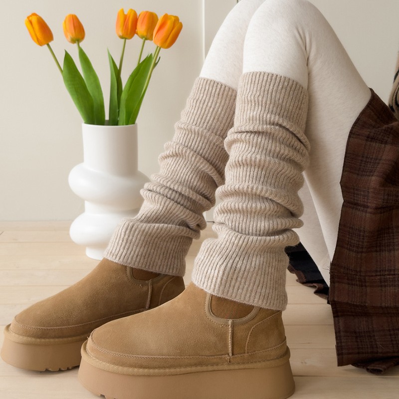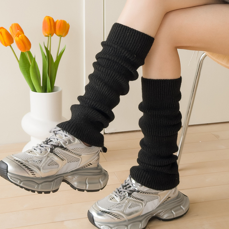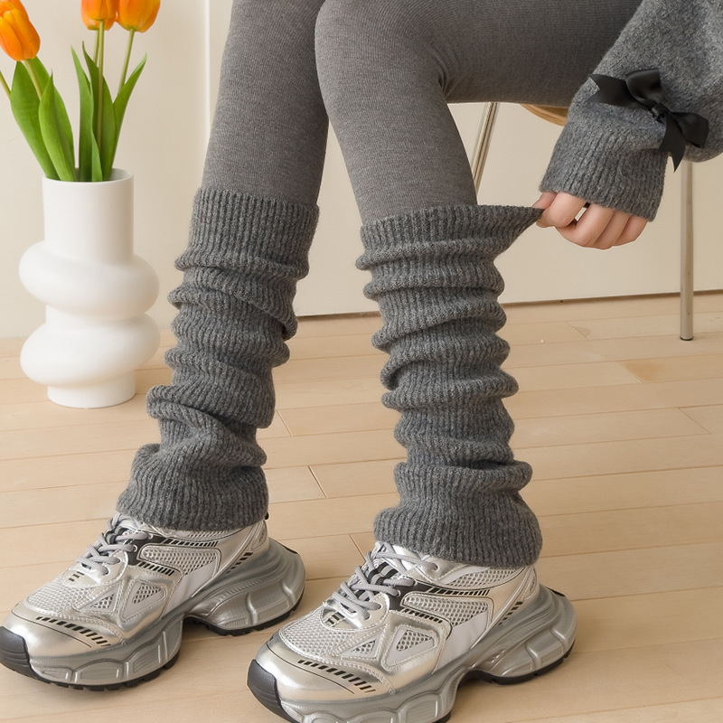 한국 동대문 핀스트라이프 스택 양말 커버 약간의 플래시 솔리드 컬러 간단한 다리 커버 가을과 겨울 따뜻한 발 커버