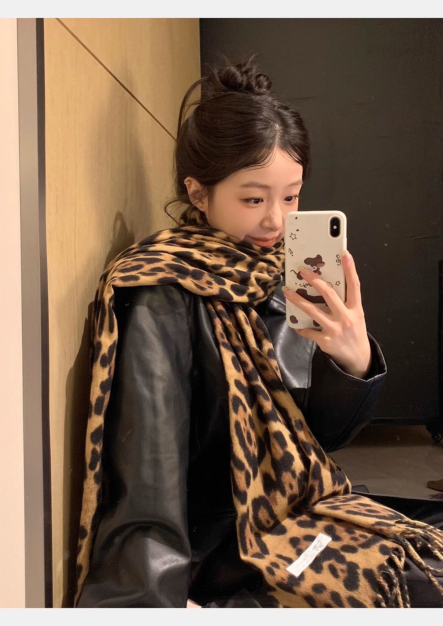 새로운 가을과 겨울 레오파드 무늬 두꺼운 따뜻한 유럽과 미국 한국 패션 매일 모방 캐시미어 술 스카프 목도리스토어 가기