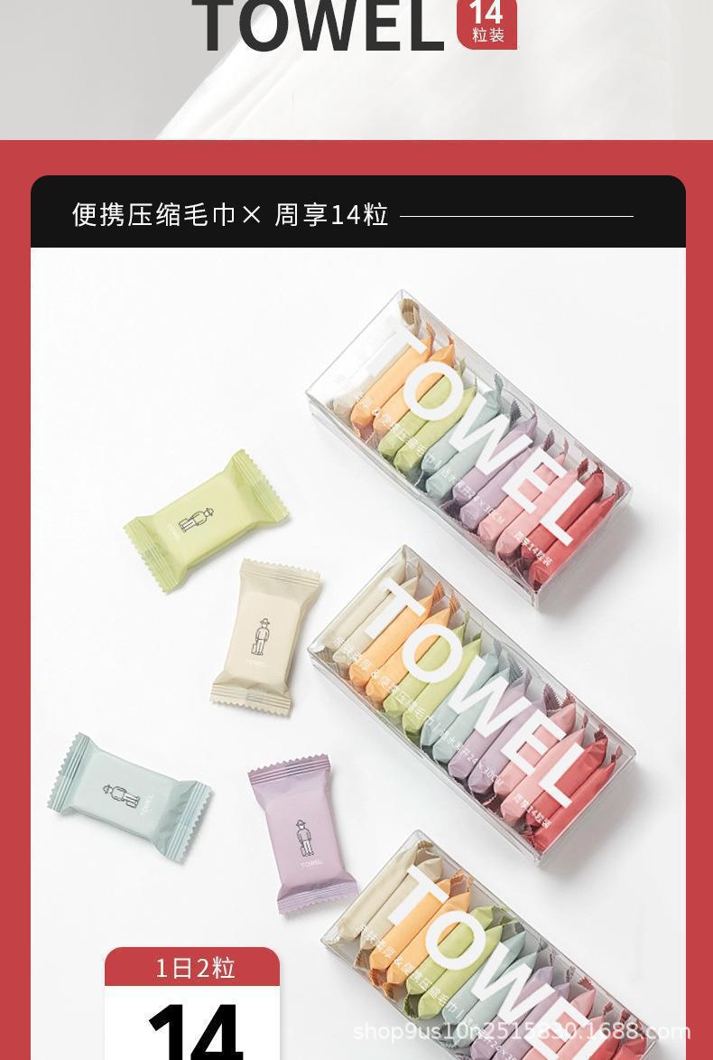 • 컬러풀한 캔디 압축타월 14장 [확대 및 두꺼워짐]