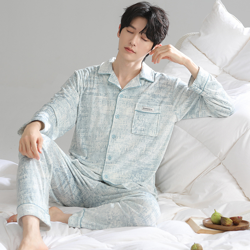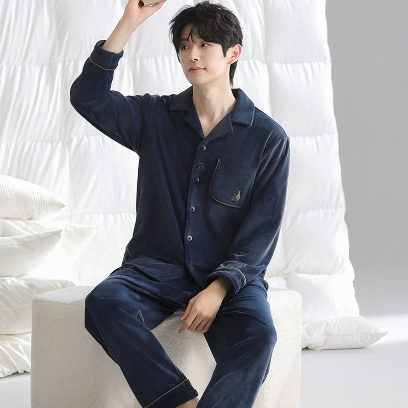 연인을위한 고급 가을 겨울 섬 벨벳 기모 따뜻한 잠옷을 두껍게 한 한국 카디건 간단한 중년 남녀 홈 의류