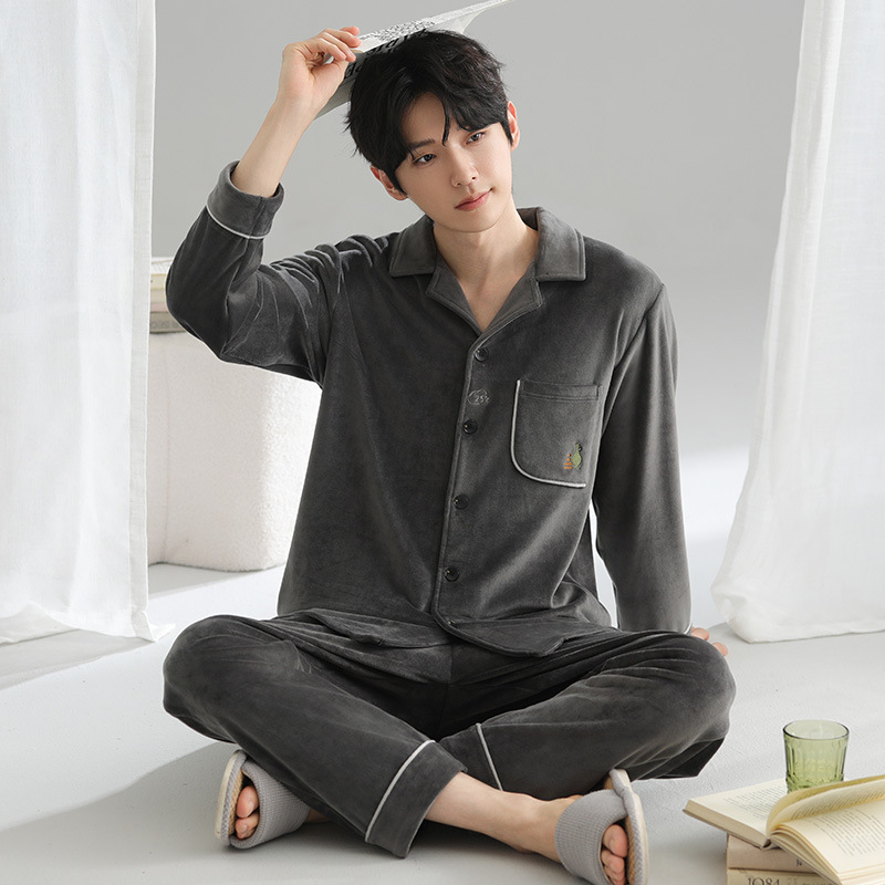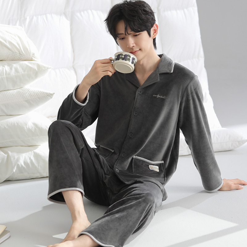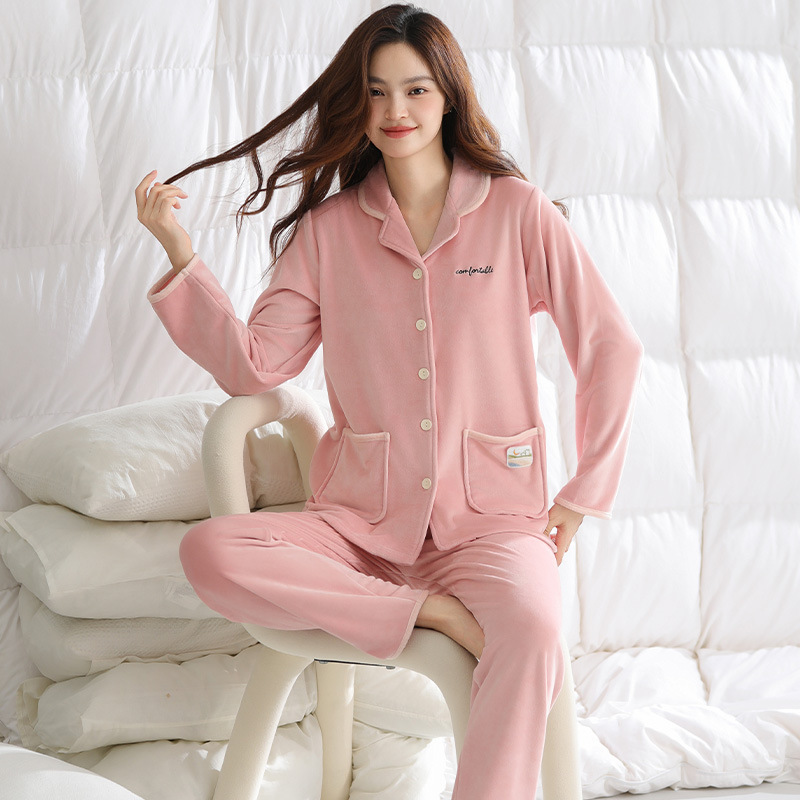 연인을위한 고급 가을 겨울 섬 벨벳 기모 따뜻한 잠옷을 두껍게 한 한국 카디건 간단한 중년 남녀 홈 의류스토어 가기