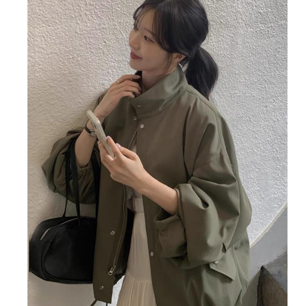 한국 세련된 가을과 겨울 레트로 스타일리스트 칼라 싱글 브레스트 루즈 올 매치 랜턴 슬리브 쇼트 재킷 코트 여성