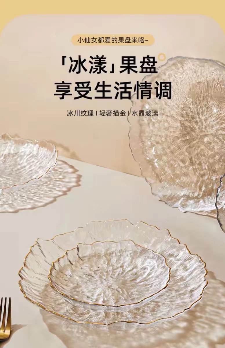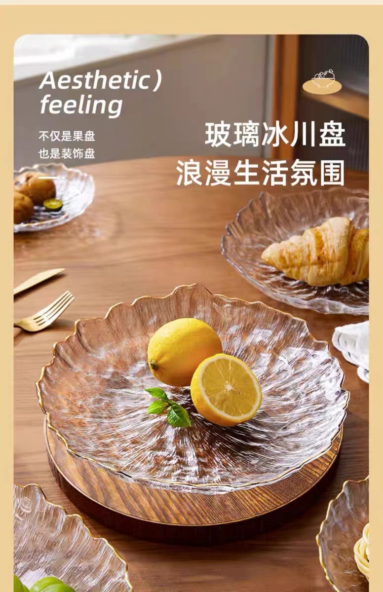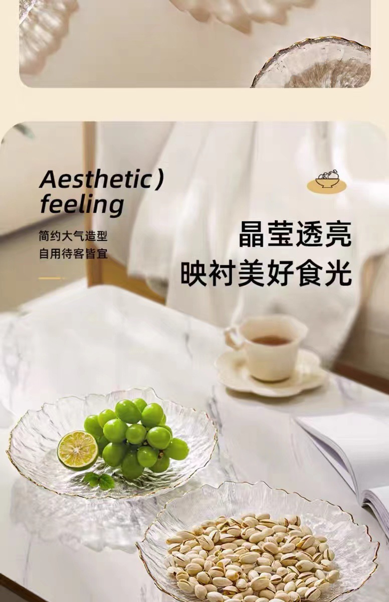 유리 말린 과일 플레이트 스낵 프론트 데스크 과일 플레이트 가정용 거실 하이 엔드 캔디 라이트 럭셔리 플레이트 투명