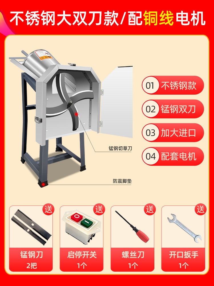 전기 잔디 분쇄기 돼지 잔디 기계 작은 잔디 커터 닭 오리 거위 소 양 동물 사육 작은 가정용 사료 기계