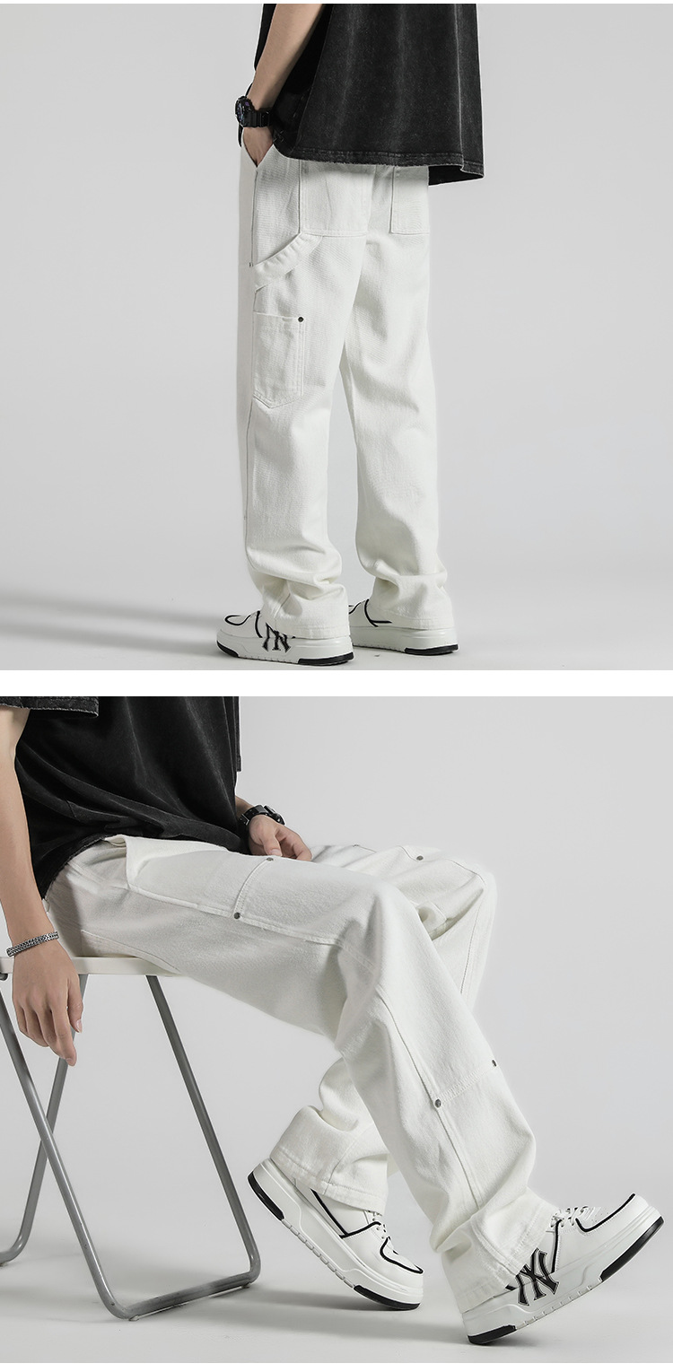 패션 하이 스트리트 청바지 남성 봄과 가을 새로운 스트레이트 툴링 바지 유행 브랜드 남성 캐주얼 바지 트렌디 한 남성스토어 가기