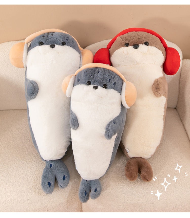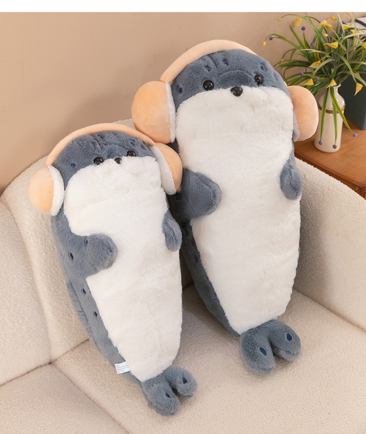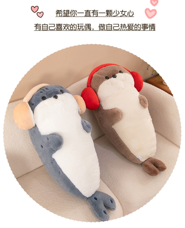 귀여운 이어폰을 쓴 물개 인형 베개 소녀 수면용 봉제 인형 쿠션 플러시 장난감 선물 도매