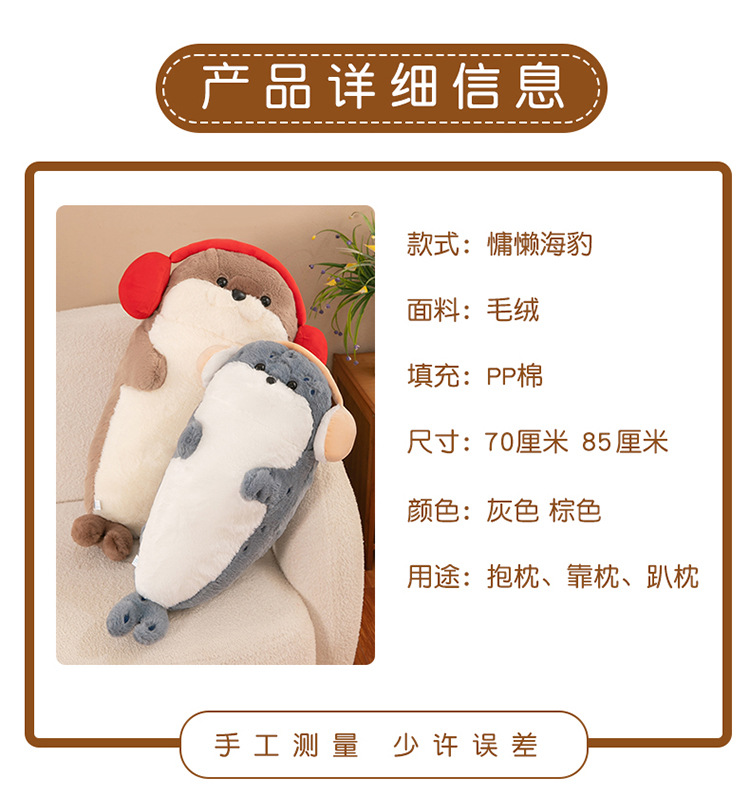 귀여운 이어폰을 쓴 물개 인형 베개 소녀 수면용 봉제 인형 쿠션 플러시 장난감 선물 도매스토어 가기