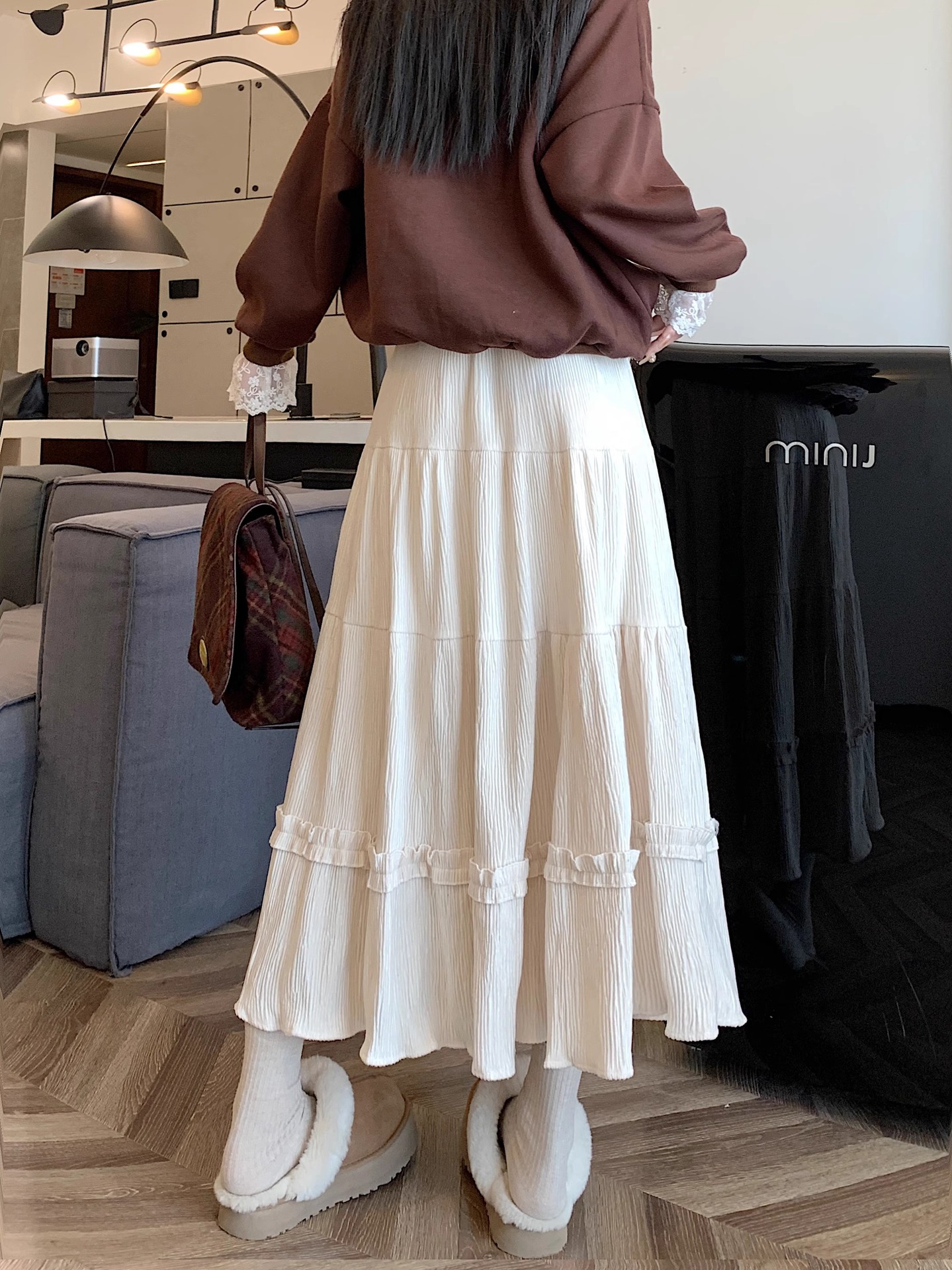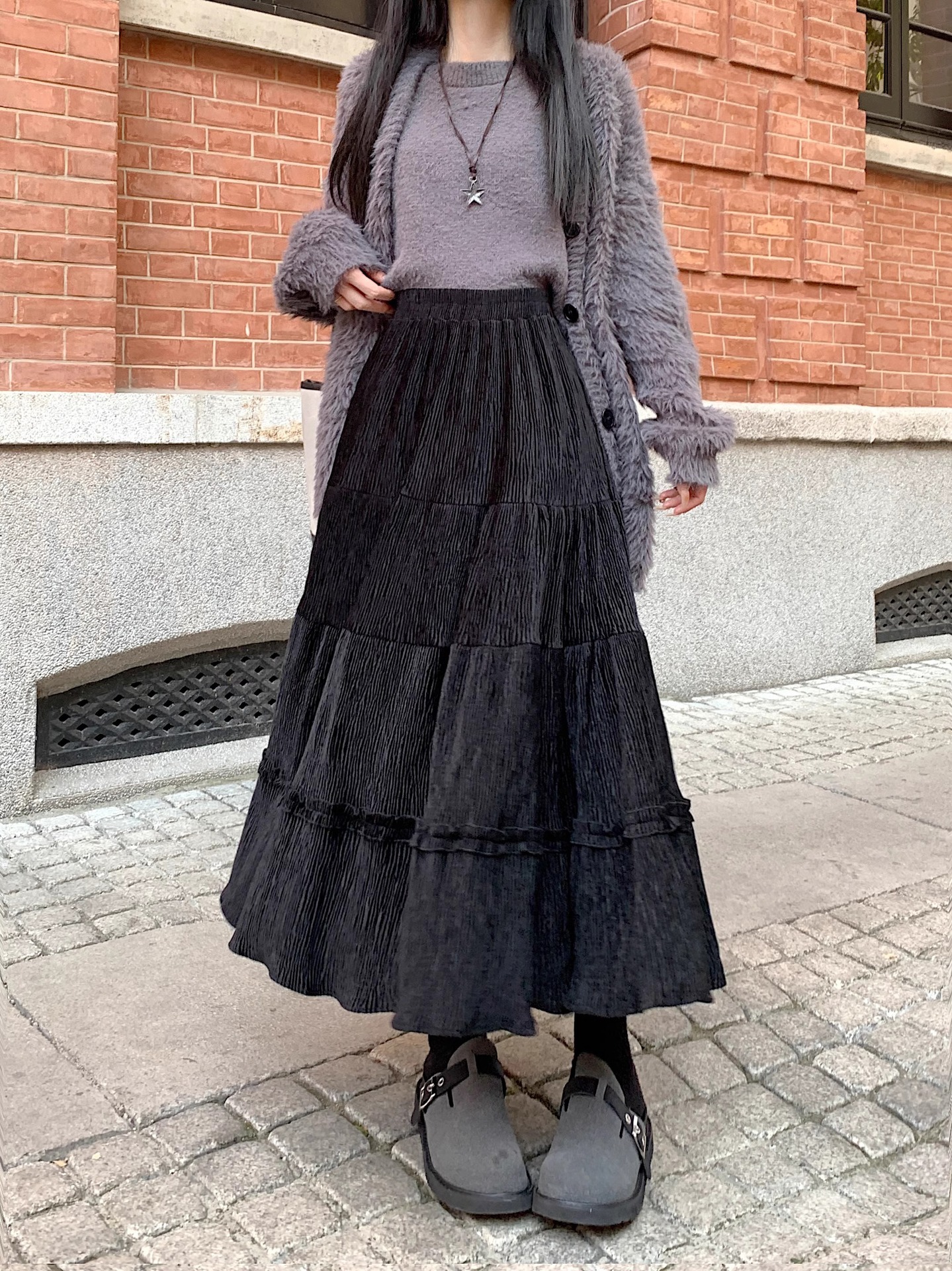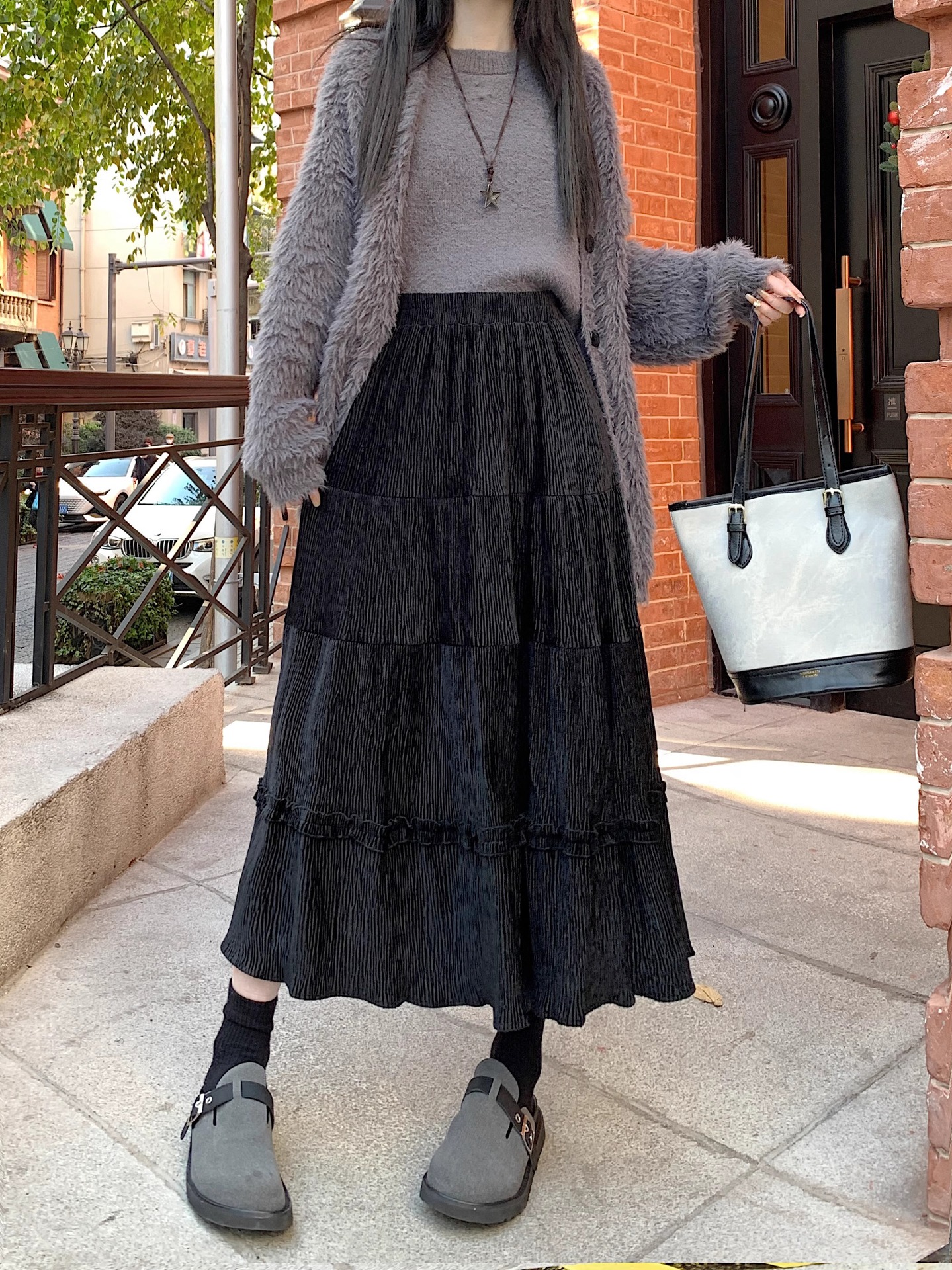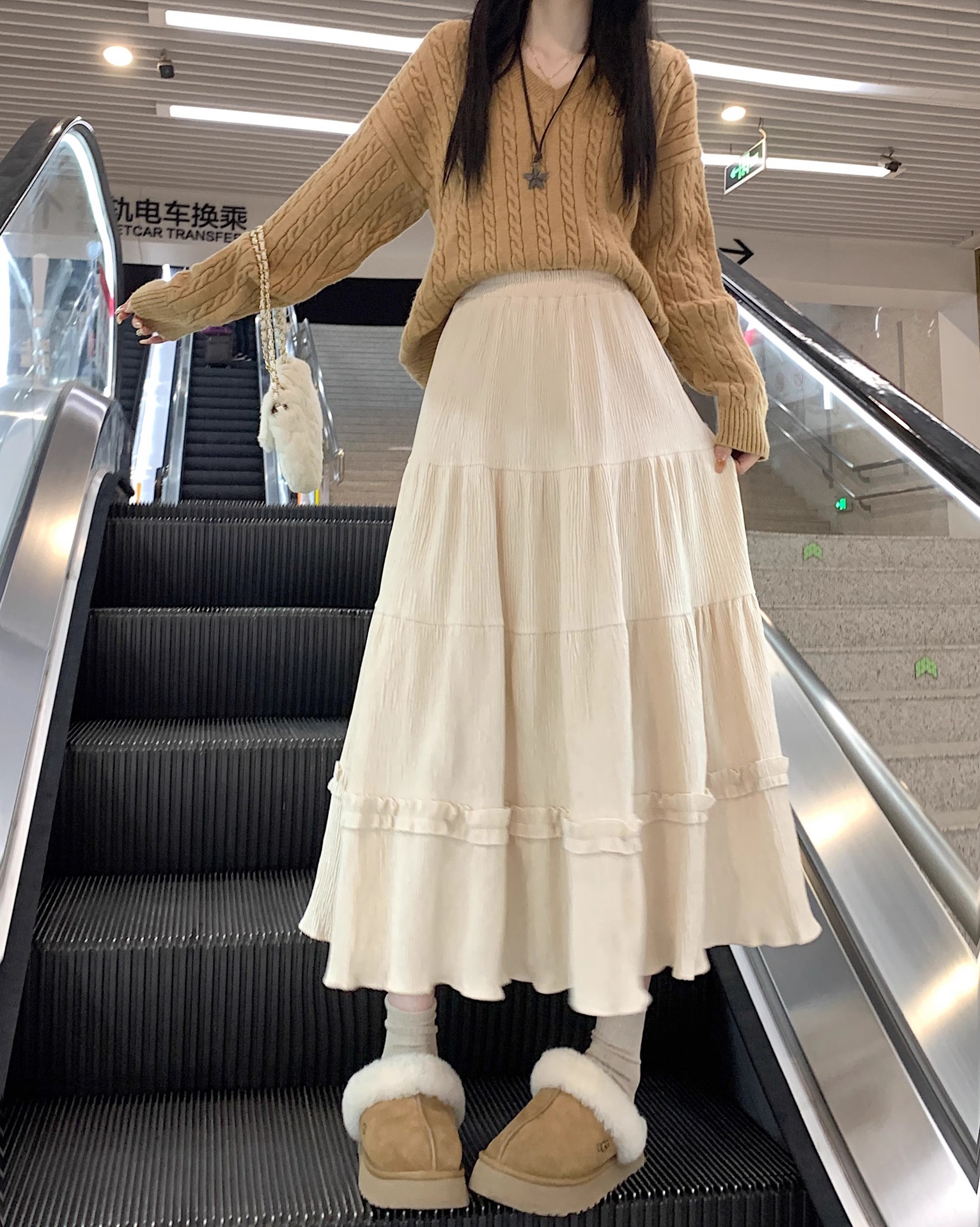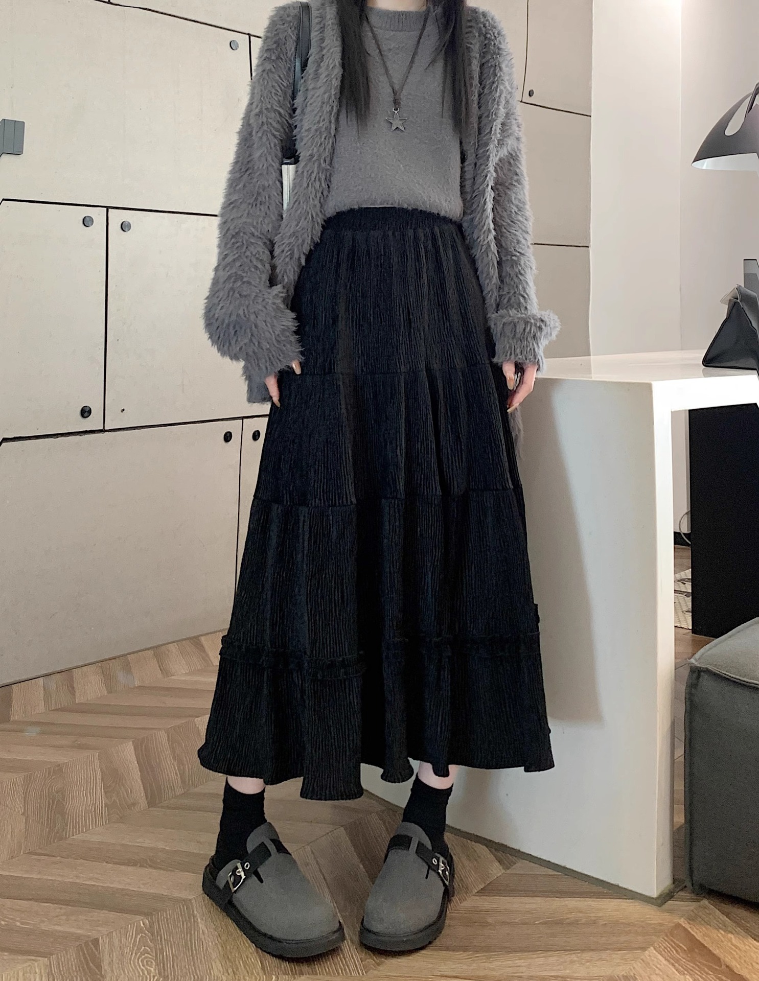 부드러운 귀 가장자리 질감 느슨한 올 매치 스커트 여성의 가을 및 겨울 높은 허리 드레이프 주름 큰 우산 스커트