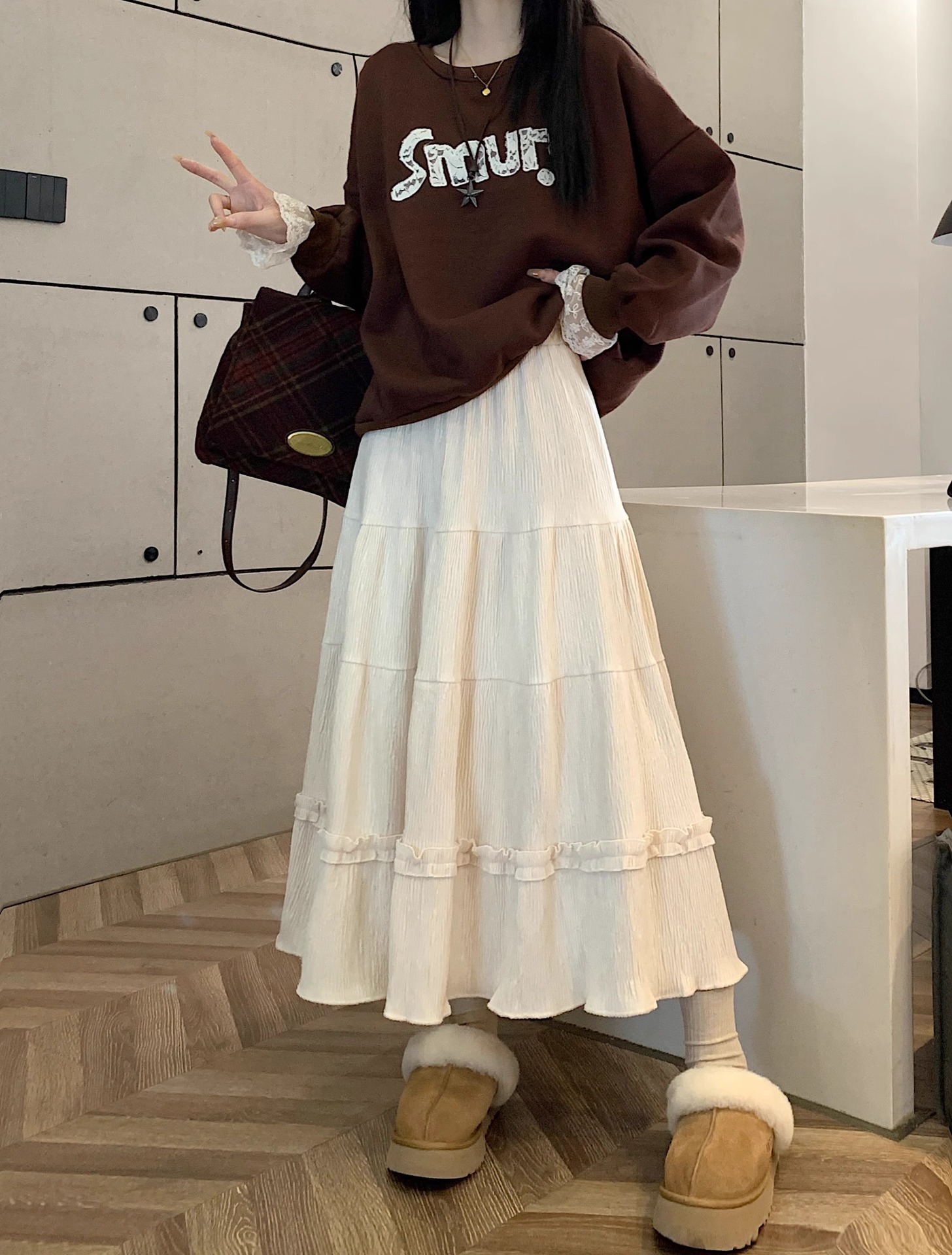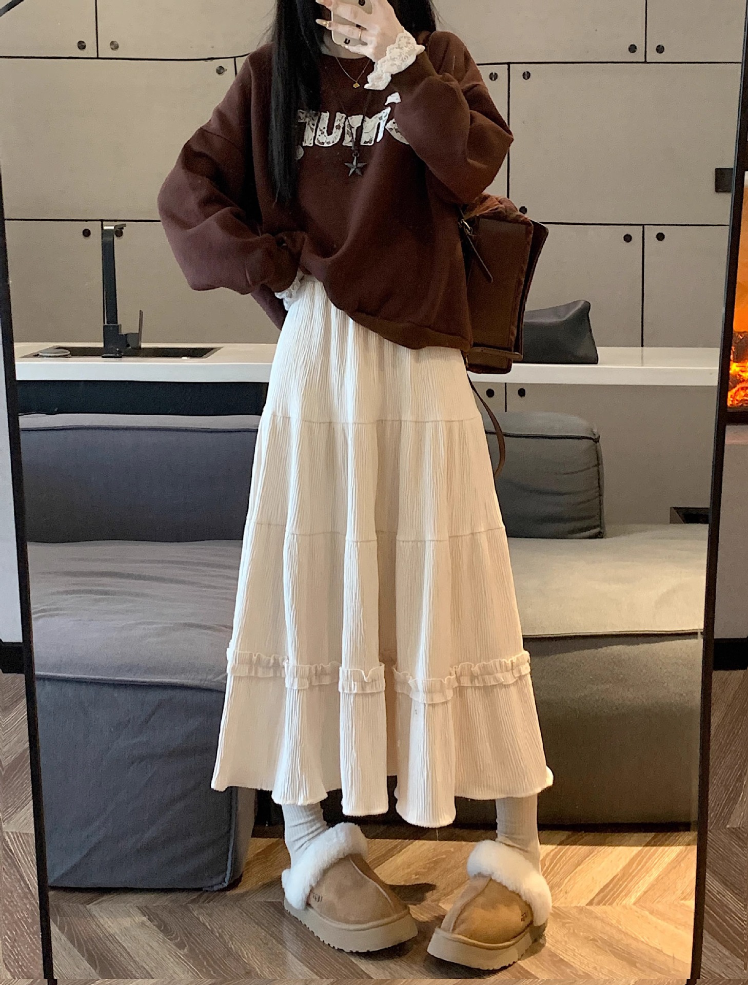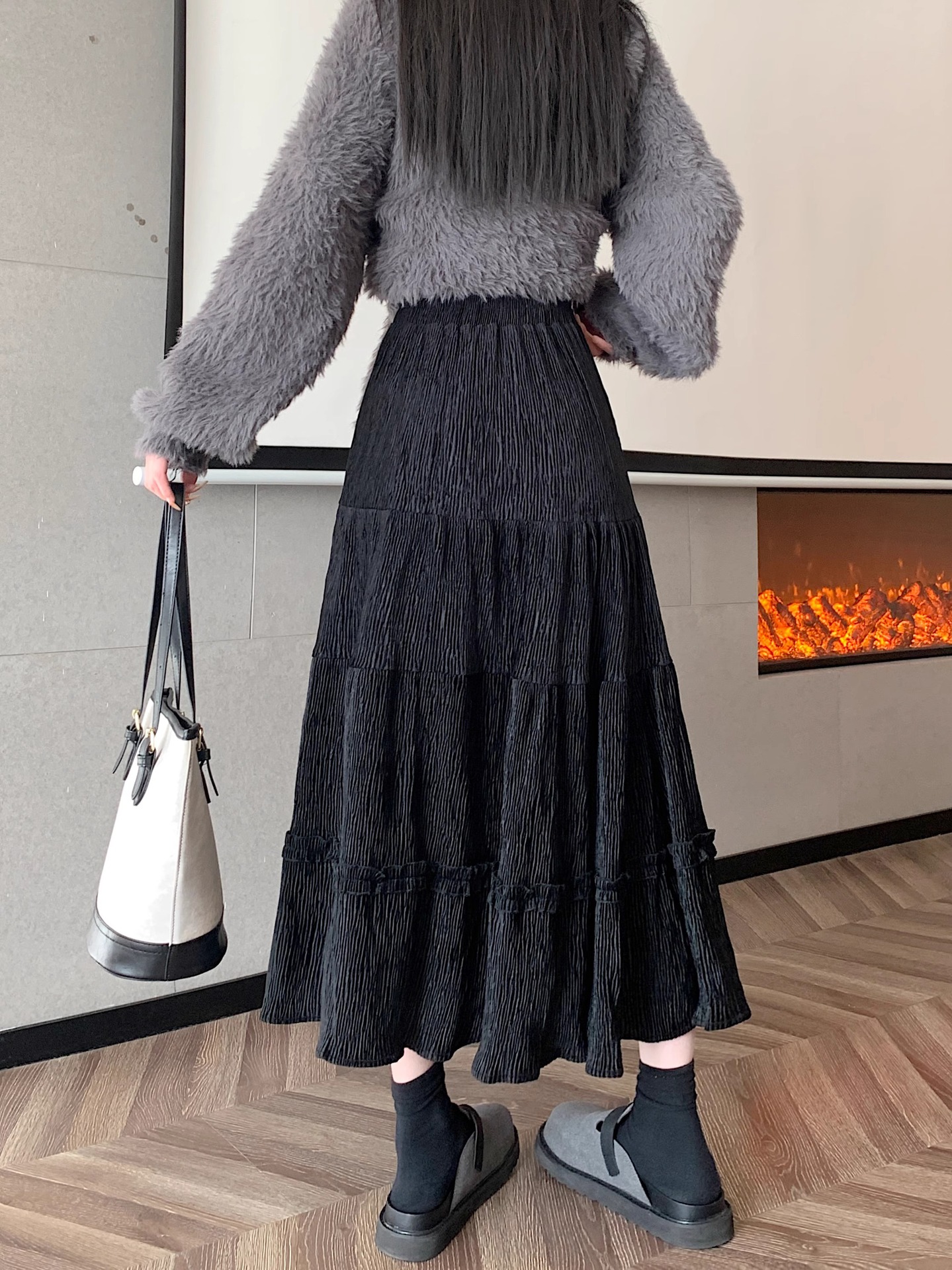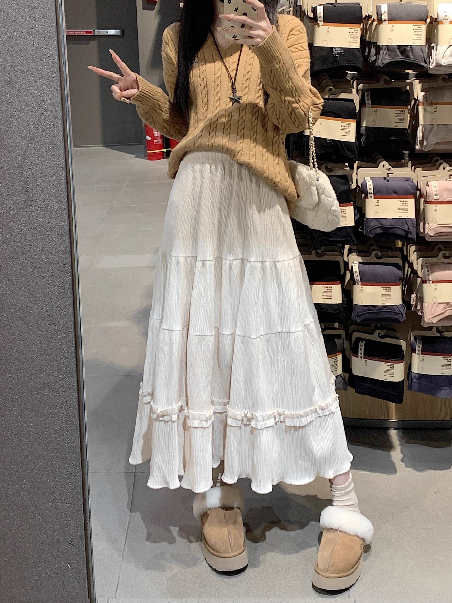 부드러운 귀 가장자리 질감 느슨한 올 매치 스커트 여성의 가을 및 겨울 높은 허리 드레이프 주름 큰 우산 스커트