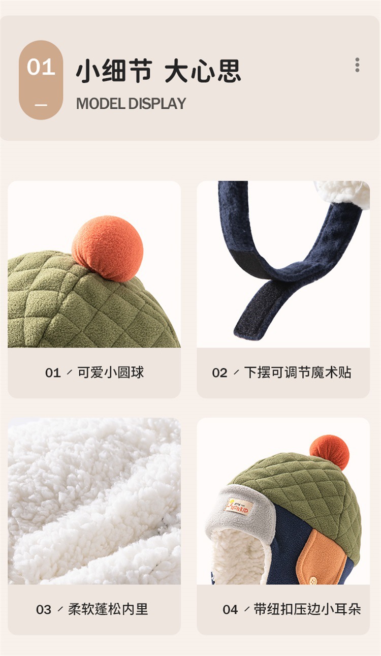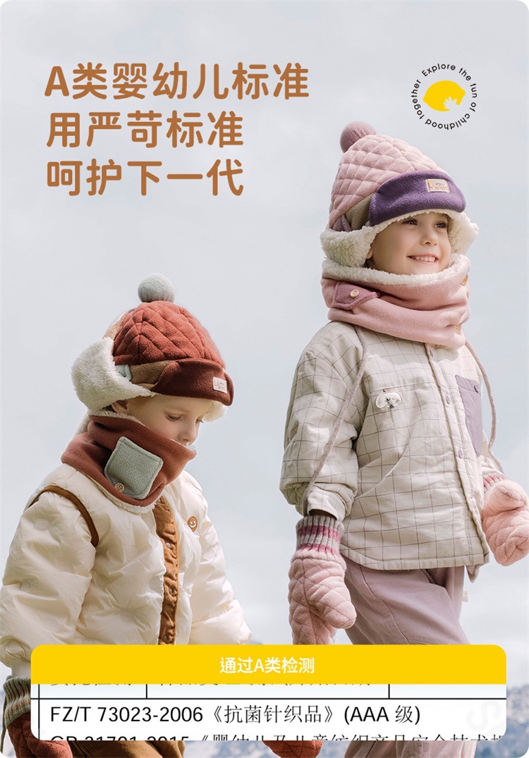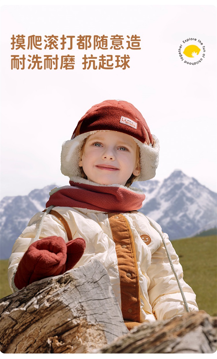(3)尺码:帽子:48-52-56cm ; 手套:130/60 ; 围脖:28*15cm