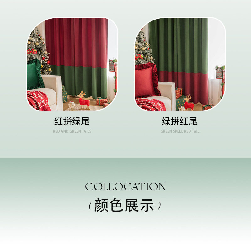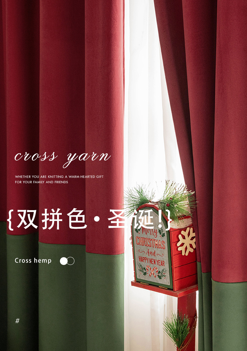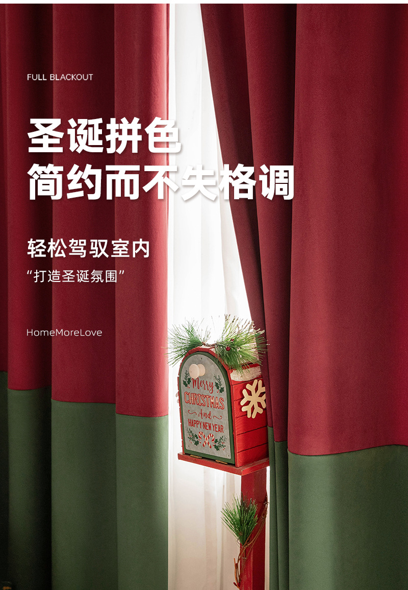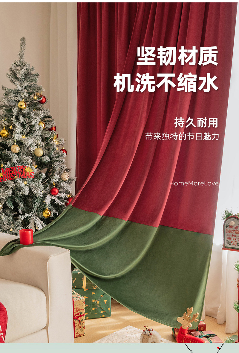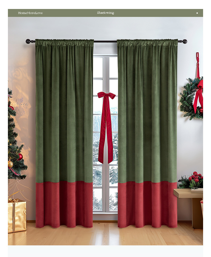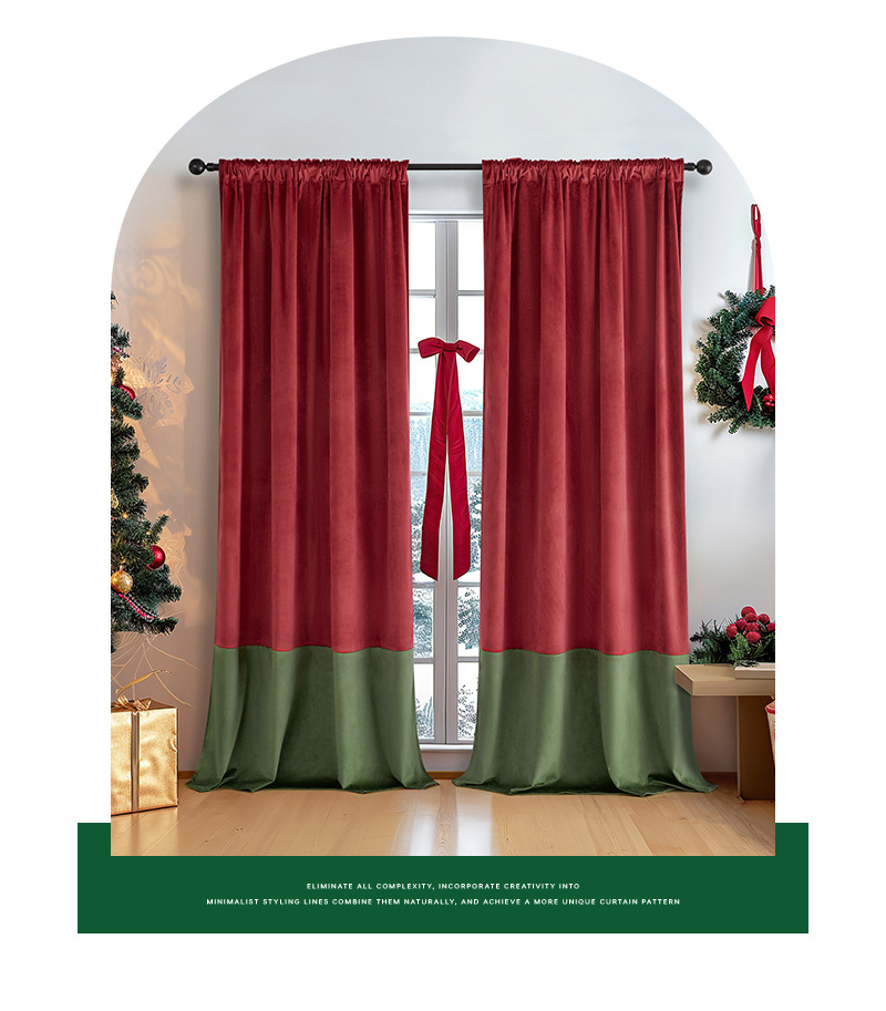 새로운 크리스마스 벨벳 커튼 거실 침실 그늘 커튼 미국 복고풍 마감 커튼 빨간색과 녹색 바느질 커튼