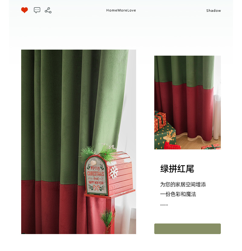 새로운 크리스마스 벨벳 커튼 거실 침실 그늘 커튼 미국 복고풍 마감 커튼 빨간색과 녹색 바느질 커튼스토어 가기