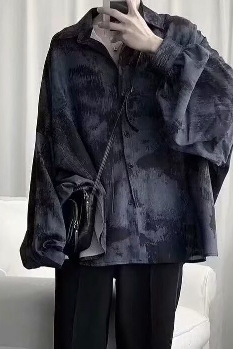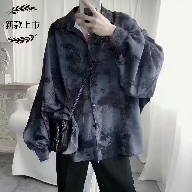 가을 새로운 패션 넥타이 염색 셔츠 남자의 홍콩 스타일 Ins 유행 루즈 캐주얼 재킷 십대 긴 소매 셔츠스토어 가기