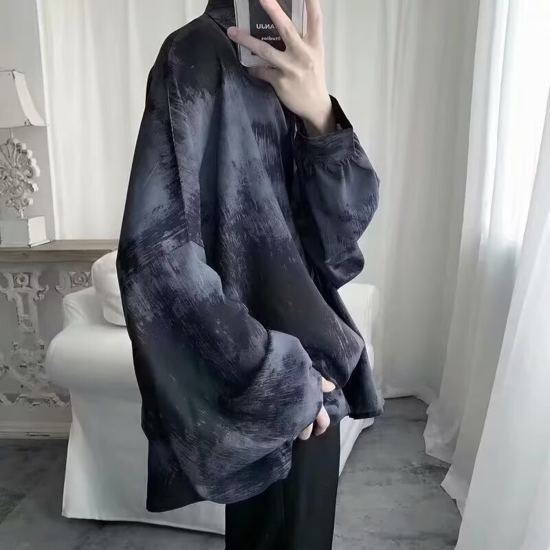 가을 새로운 패션 넥타이 염색 셔츠 남자의 홍콩 스타일 Ins 유행 루즈 캐주얼 재킷 십대 긴 소매 셔츠