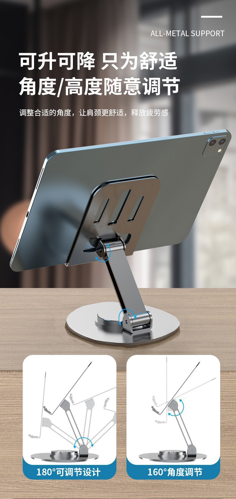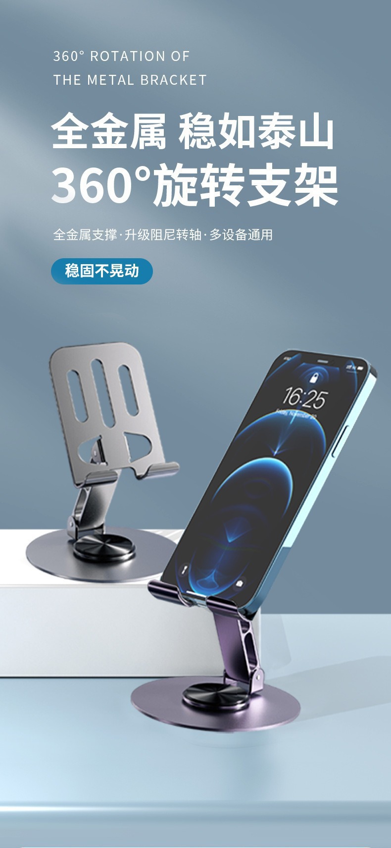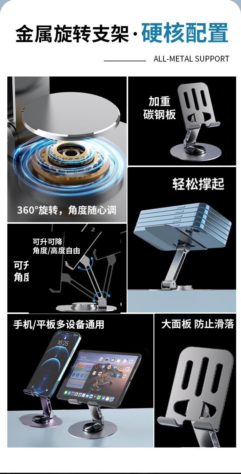 抖音款金属直播手机支架360度旋转调节折叠懒人平板桌面手机支架